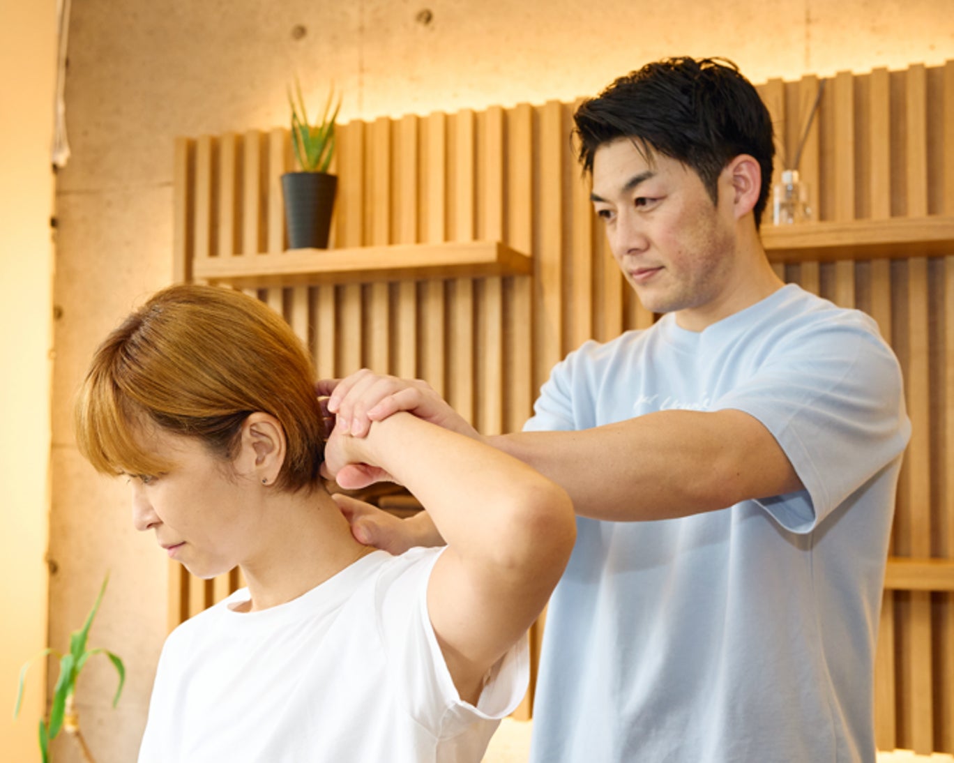 「整体」は身体の歪みや疲労を矯正する施術方法です。長時間のデスクワークやスマホの使い過ぎなど、日常生活から起こる身体の歪みを治し、不快感や痛みを軽減します。正しい姿勢に戻して痩せやすいカラダを作ります。