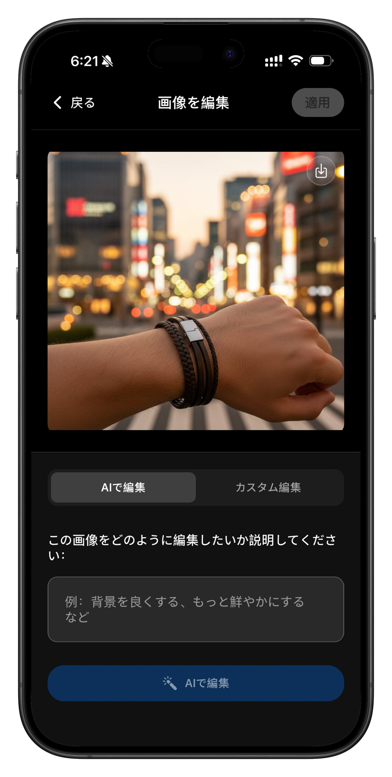AI画像編集:テキスト配置、背景調整、ビジュアル最適化など、自動編集により素の画像を公開可能なビジュアルに変更します。