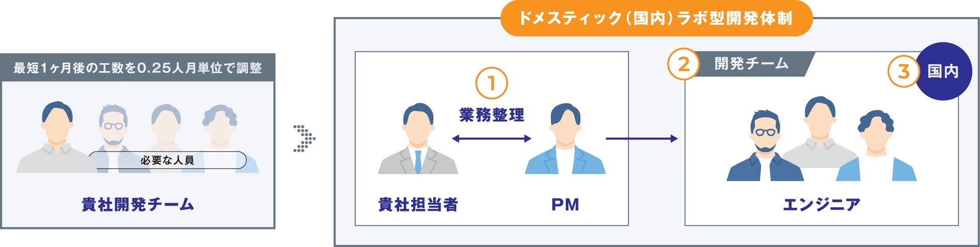 プロジェクトの進捗やビジネス環境の変化に応じて、業務範囲を適宜調整可能