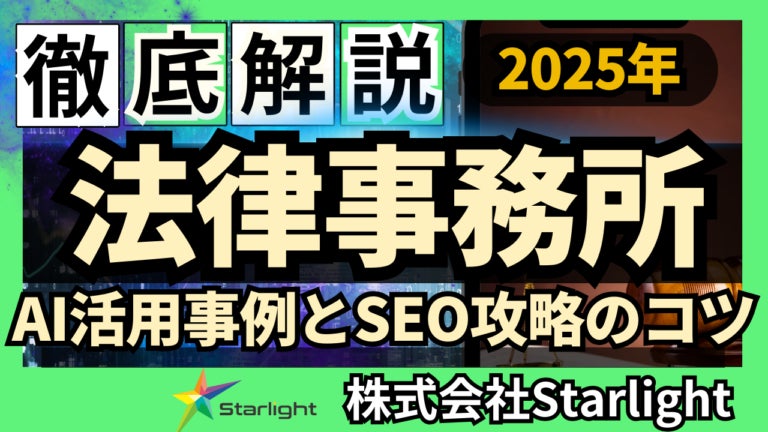 株式会社Starlight(本社:東京都豊島区、代表取締役社長:黒田 真乃介、以下「当社」)は、法律事務所の皆様を対象に「【2025最新版】法律業界のSEOトレンドレポート」を公開いたしました。本レポートは、法律事務所がSEOを活用して集客を強化するための最新事例や成功パターン、そして成果に直結する戦略的なSEOノウハウを一冊に集約しています。