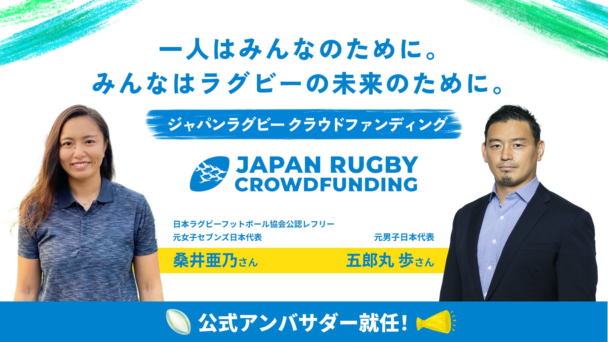 公益財団法人日本ラグビーフットボール協会(以下「JRFU」、会長:土田 雅人、東京都港区)は、国内最大級のクラウドファンディングプラットフォームを運営する株式会社CAMPFIRE(以下「CAMPFIRE」、代表取締役:中島 真、本社:東京都渋谷区)と提携し、ラグビー領域に特化した「JAPAN RUGBY CROWDFUNDING」サービスを2025年7月9日(水)より開始いたしますので、お知らせいたします。また、本サービスの公式アンバサダーに元ラグビー日本代表の五郎丸 歩さん、元女子セブンズ日本代表でJRFU公認レフリーの桑井 亜乃さんが就任いたしましたので併せてお知らせいたします。
