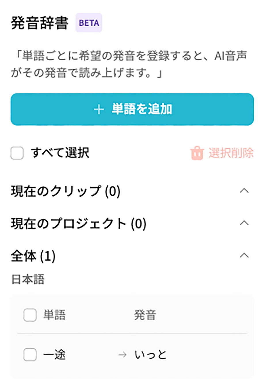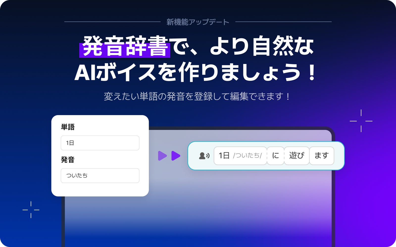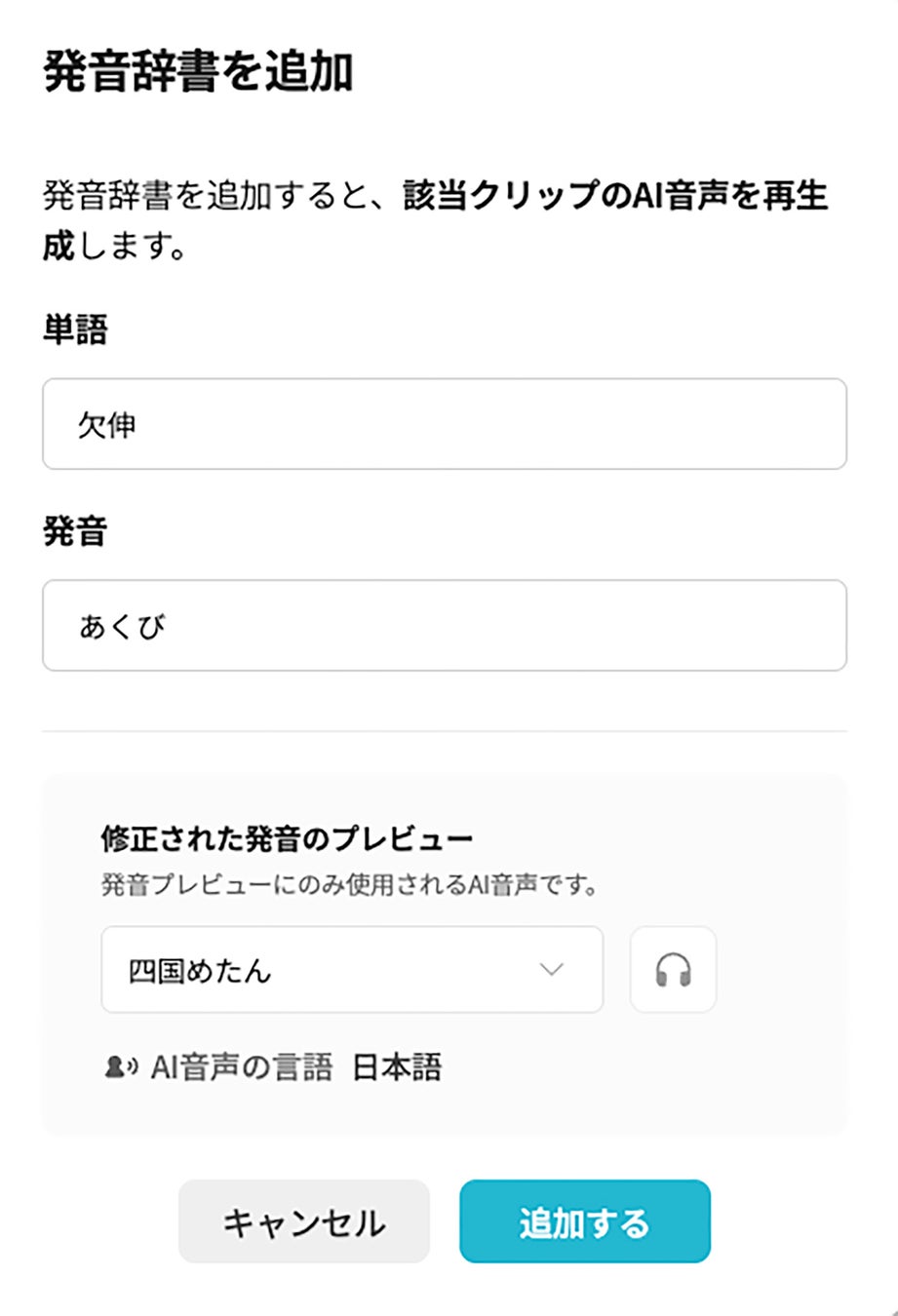 日本のユーザーからの多くの要望に応え、より正確な発音を実現する機能を実装いたしました。日本語の特徴として、一つの単語が様々な発音になるため、AIが誤って読み上げる部分をカスタム設定できるように機能を開発しました。