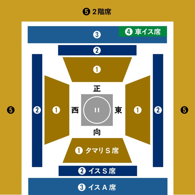 タマリ席に次いで土俵が見やすい人気エリアです。土俵全体をしっかり見渡せるバランスの良い座席で、観戦初心者の方にもおすすめです。