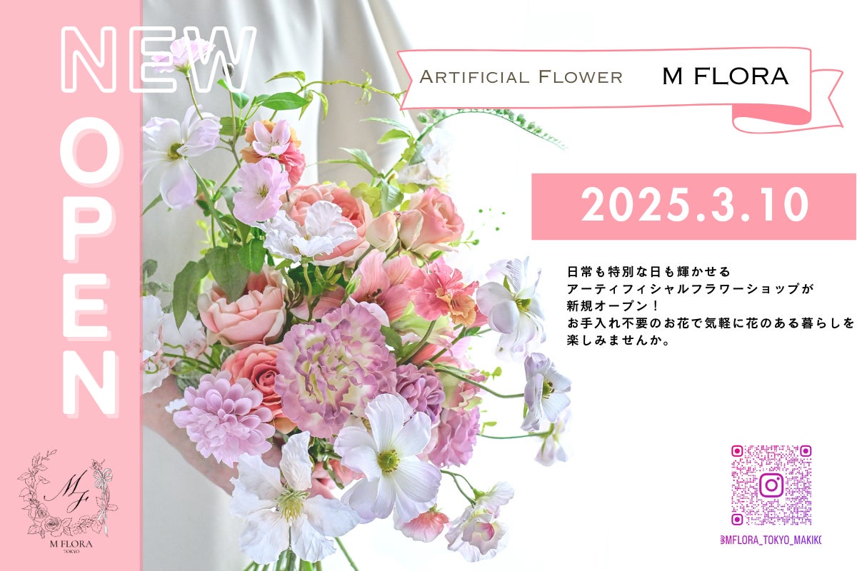 日常も特別な日も輝かせるアーティフィシャルフラワー専門店「M FLORA(エム フローラ)」(所在地:東京都目黒区、代表:宮内牧子)が、2025年3月10日(月)に自由が丘(東京都目黒区)に新店舗をオープンいたします。