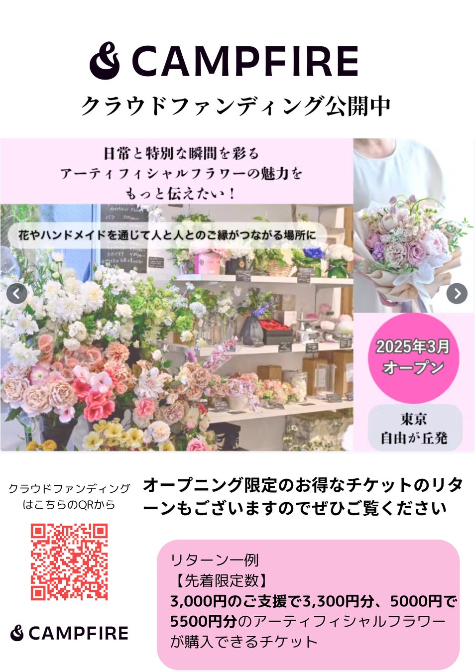 これからも、より多くの方にアーティフィシャルフラワーの美しさと楽しさをお届けしたいという想いから、自由が丘に新店舗をオープンいたします。