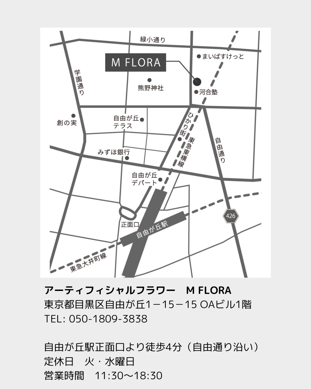 M FLORAは、花やハンドメイドを通じて人と人とがつながる場を創出し、自由が丘に新しい癒しと彩りをもたらしたいと思います。