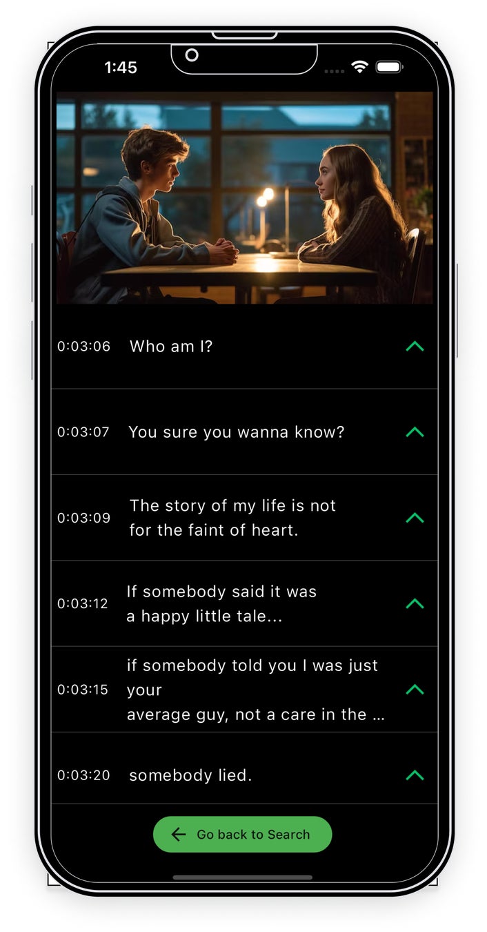 世界最大級の字幕データベースから様々な映画やドラマの字幕データを取得し、動画の再生に合わせて表示することで、スムーズな視聴体験を実現。
