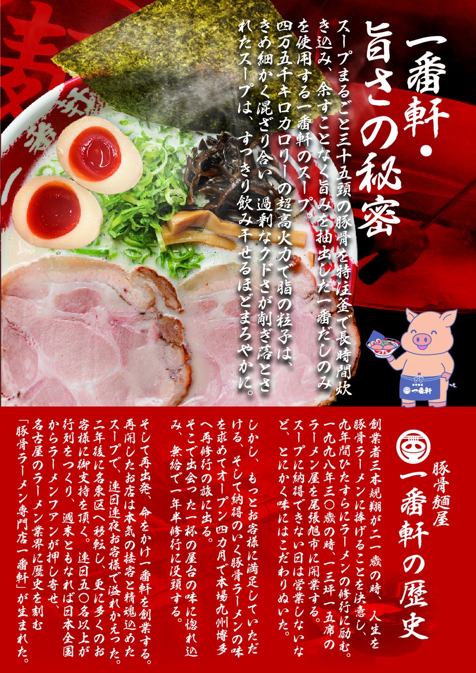 一番軒は、「おいしさ」と「社会貢献」の両立を目指し、これからも地域社会とともに歩んでまいります。