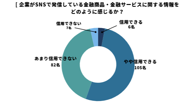 金融商品・金融サービスに関する企業のSNS発信について、「信頼できる」「やや信頼できる」と回答した人は55.5%となりました。
