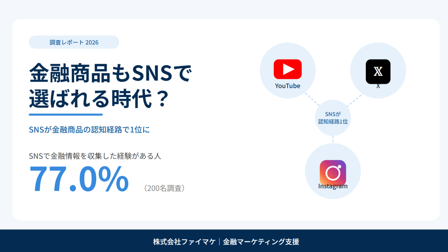 SNSの普及により、消費者の商品購買行動だけでなく、金融商品における情報収集や意思決定にも変化が見られています。株式会社ファイマケ(本社:東京都千代田、代表取締役:苛原寛)は、20代~70代の消費者200名を対象に「SNSと商品・金融サービスの購買行動」に関する調査を実施しました。