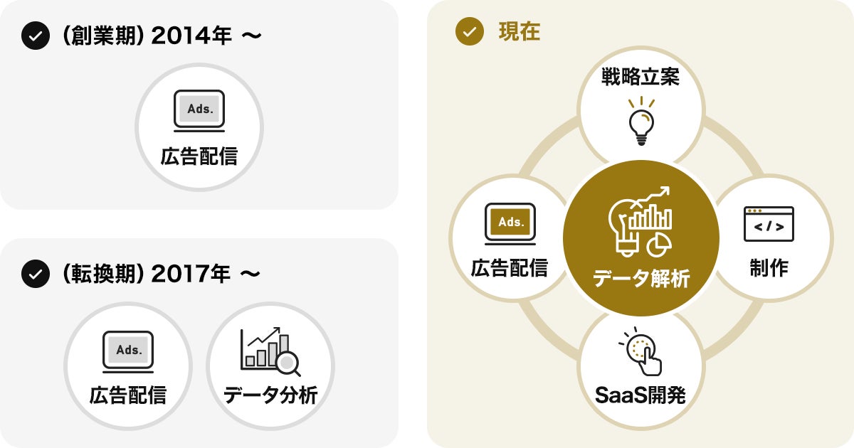 現在の当社事業は、広告領域を超え、以下のように発展しています。