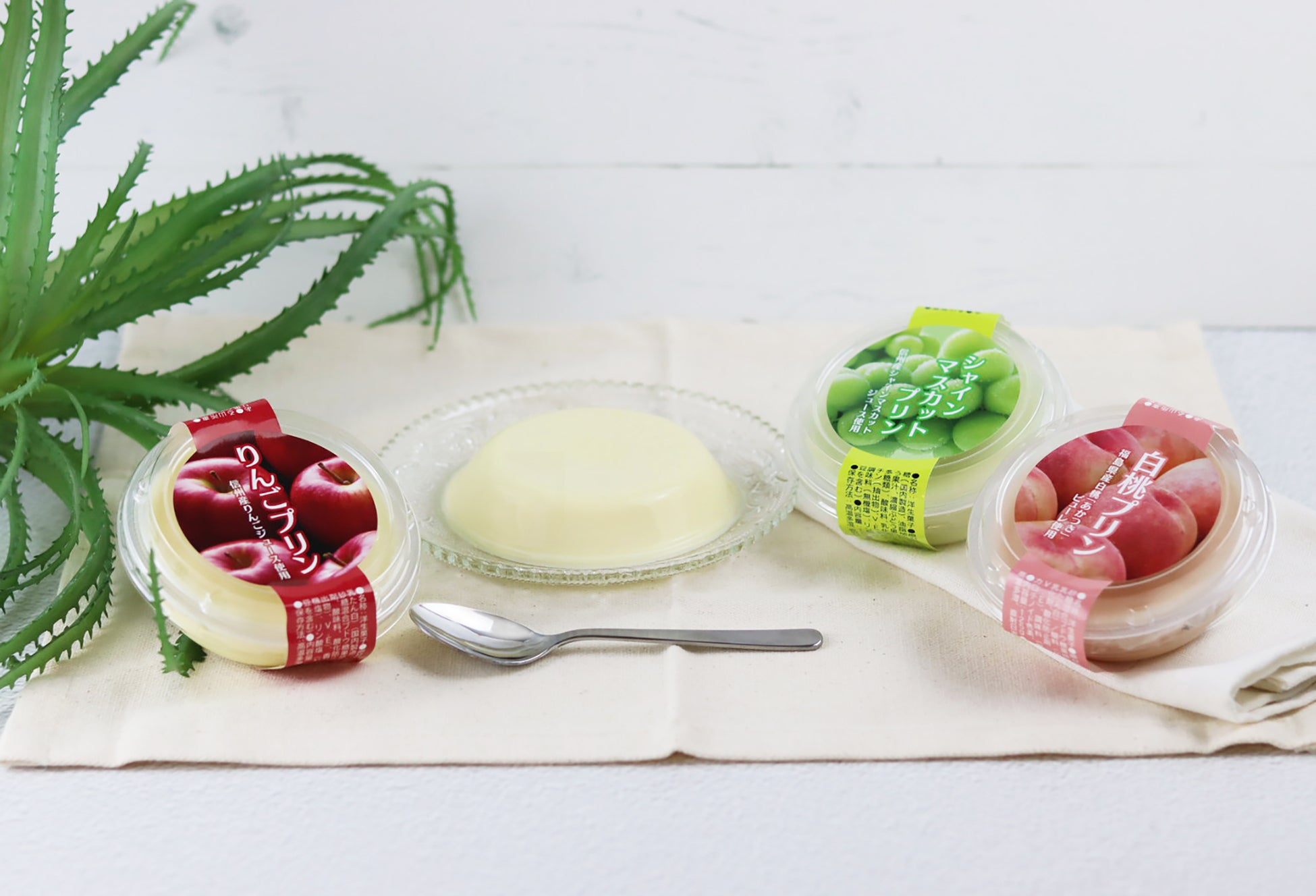 果実の香りが際立つ“りんご・白桃・シャインマスカットプリン”発売。常温180日保存可能