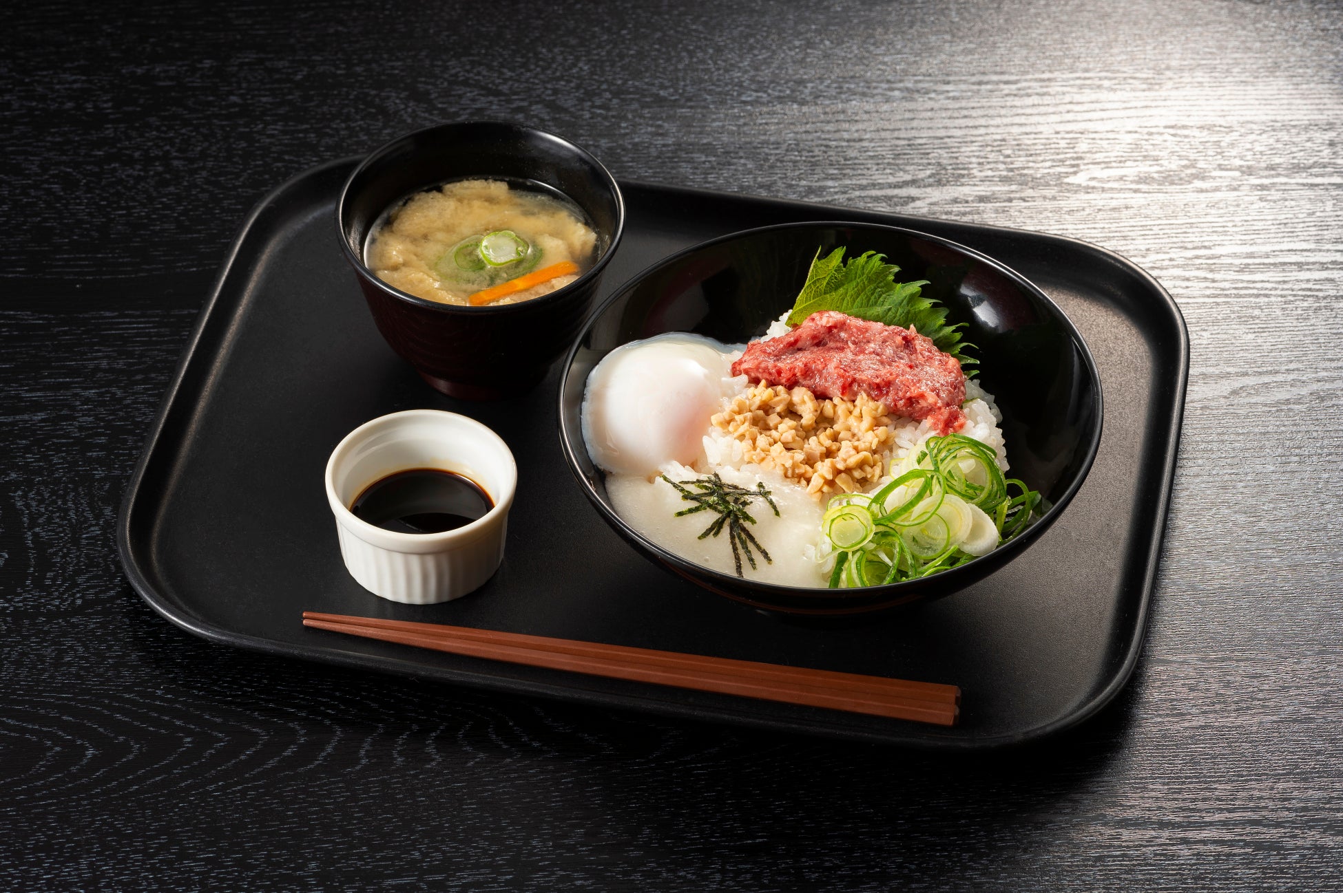 馬の新鮮な赤身を中心に馬脂を混ぜ、口溶けの良いたたきにしています。無添加で安心して召し上がれます。温玉、納豆、山芋との組み合わせをお楽しみください。