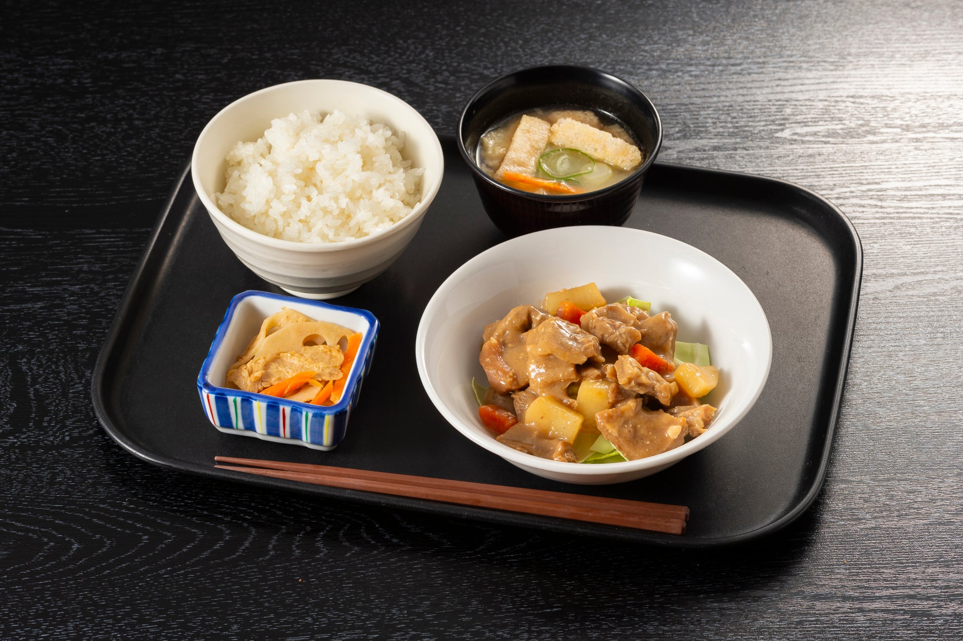 馬の大腸の臭みをしっかり取って、調味料や玉ねぎで味付された千興ファームの煮込みと、店内で甘めに味付した野菜を合わせました。ご飯が進む一品に仕上げてます。敷いている角切りキャベツもアクセントになっています。
