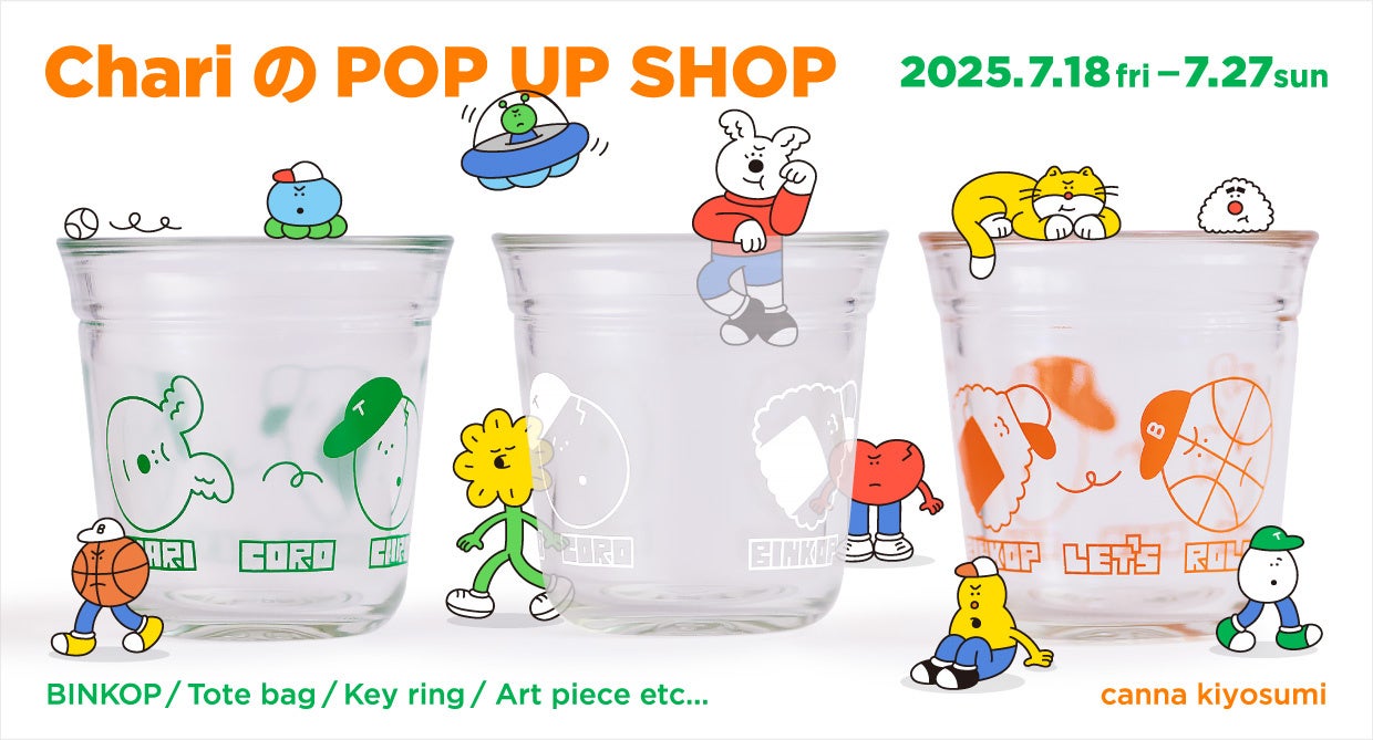 弊社所属アーティストChariは、2025年7月18日(金)〜7月27日(日)の期間、東京・清澄白河の雑貨店「canna kiyosumi」にて『Chariの POP UP SHOP』を開催します。