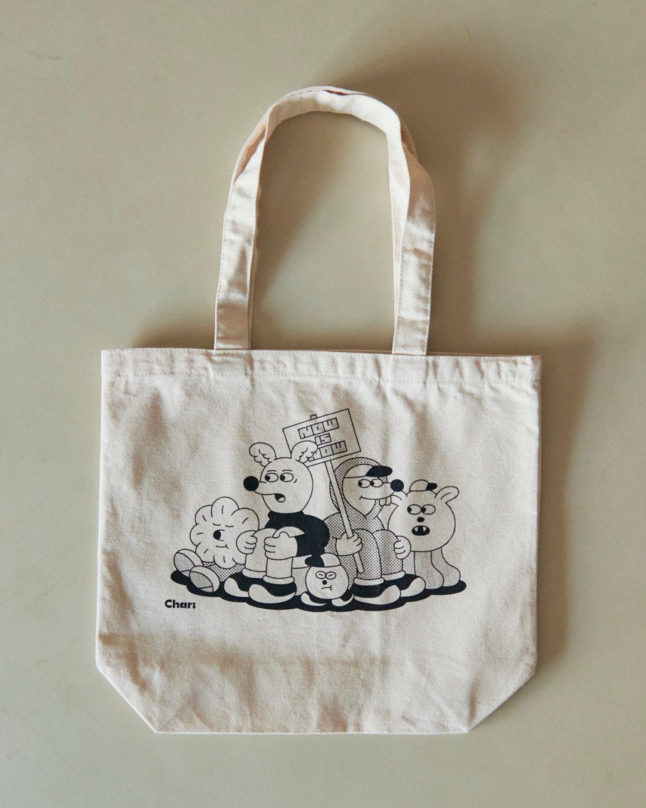 清澄白河はChariの地元でもあり、現在も活動の拠点としています。雑貨店canna kiyosumiと一緒に作った新作アイテム、大川硝子工業所さんのBINKOPというコップ(3色展開)と、トートバッグ2種など、実用的に使えるのアイテムを展開します。