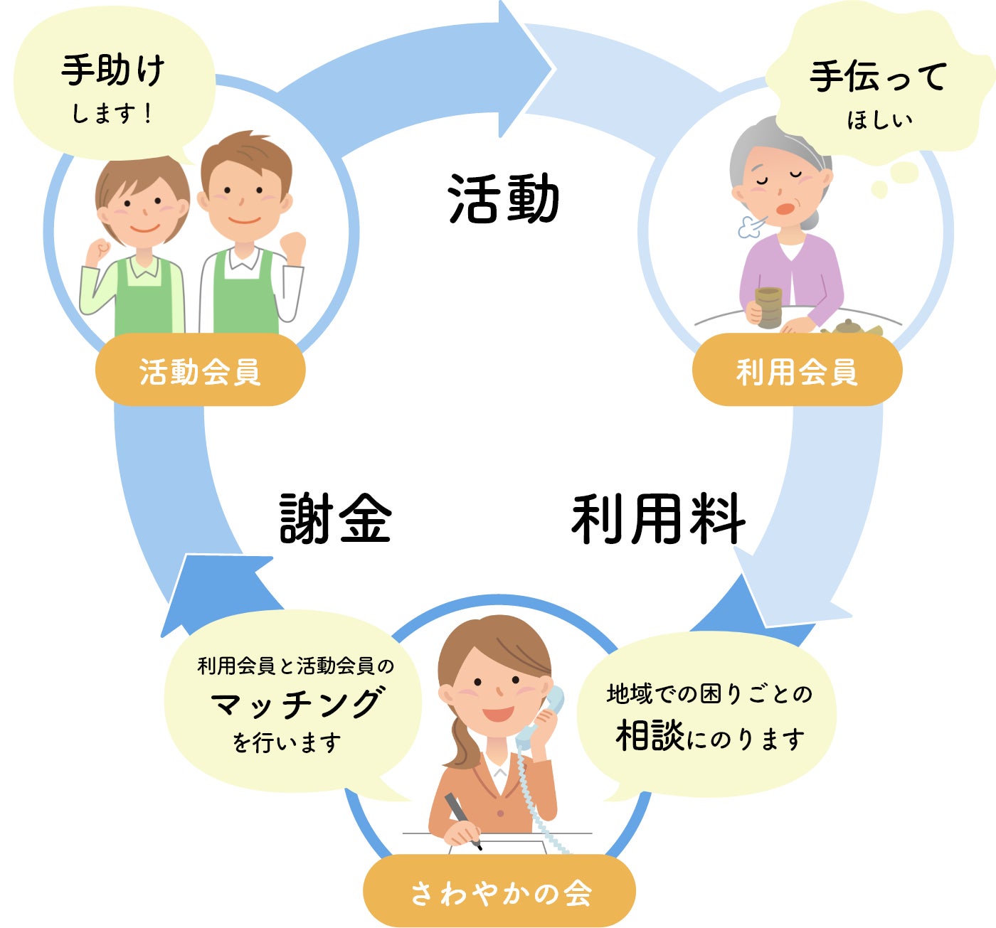 (サービス提供に関して、認定NPO法人さわやかの会(兵庫県川西市)と、そのグループ法人であるNPO法人さわやか北摂をはじめとする『さわやかさんグループ』による連携体制のもと提供しています。)