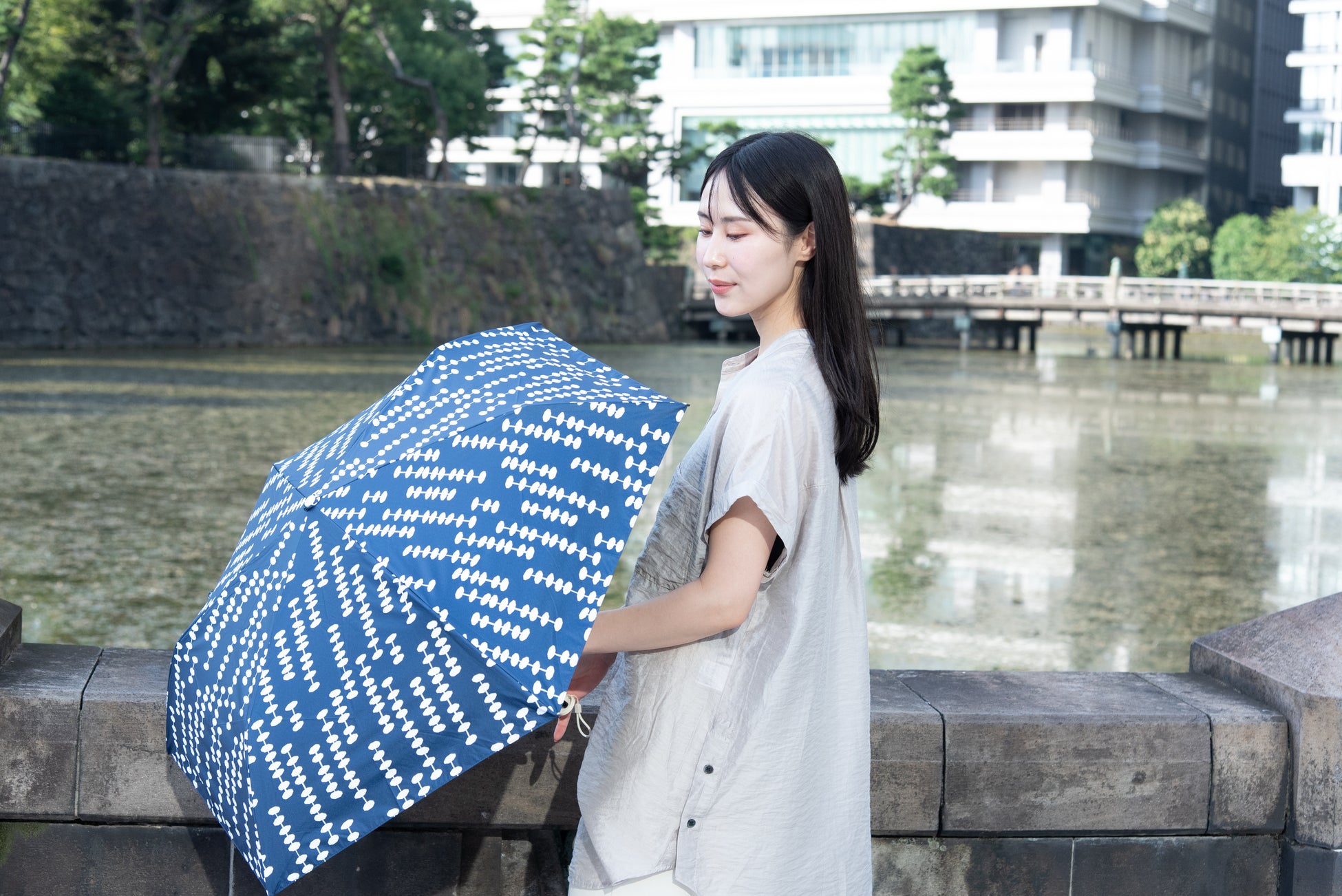 和に寄りすぎないデザインにすることで、どんなコーディネートでも合わせやすく、通勤や通学など普段の生活でも取り入れやすい傘に仕上げています。従来の河馬印本舗の晴雨兼用傘と同じく、デザインの中に必ず1色、日本の伝統色を入れています。