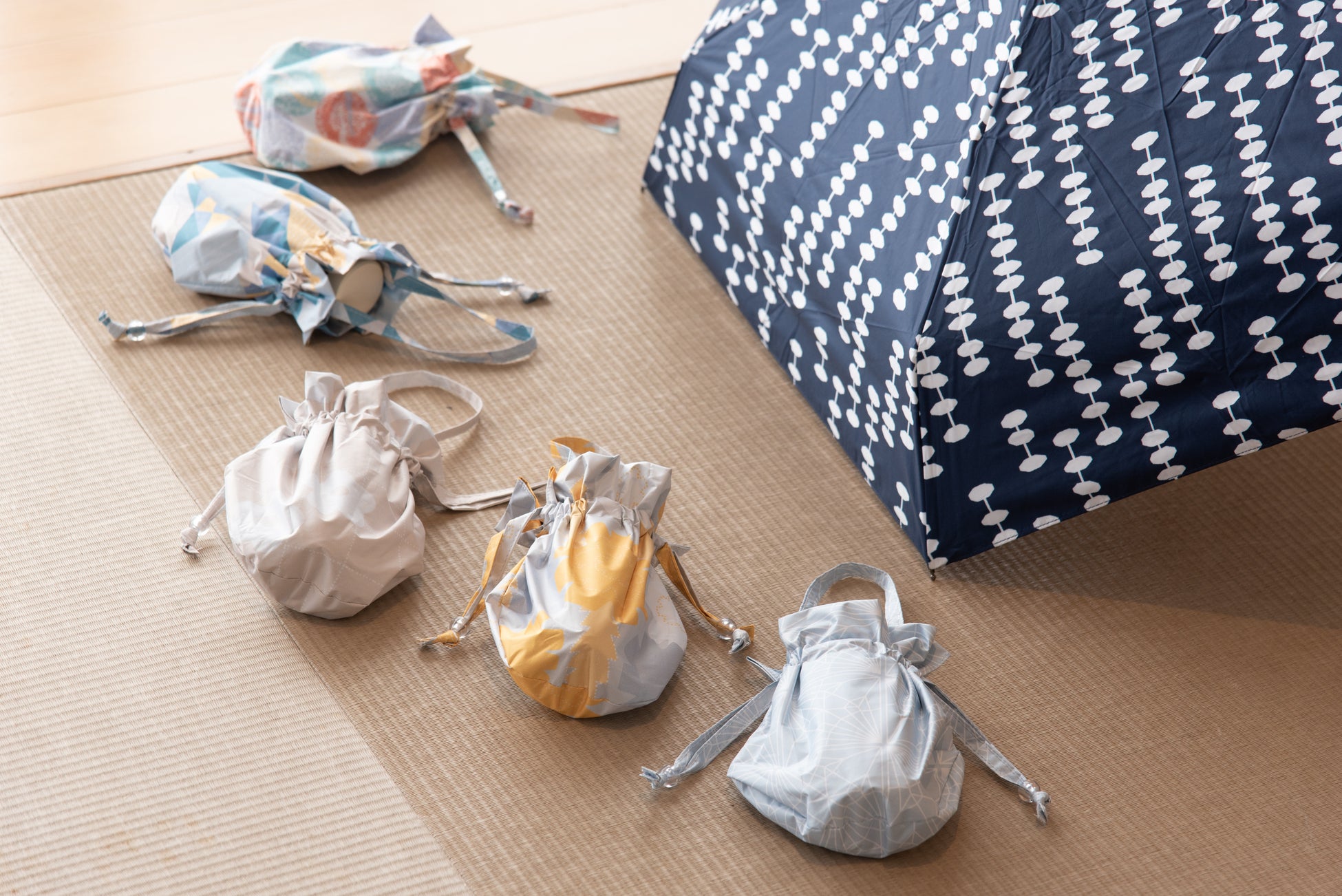 傘袋が巾着袋に!?モダン和柄で大人気の『河馬印本舗』から待望の新シリーズが登場!巾着袋や風呂敷からイメージした携帯しやすさにフォーカスした晴雨兼用傘を発売