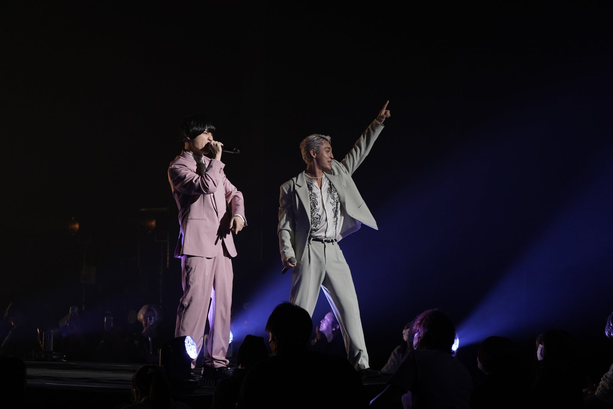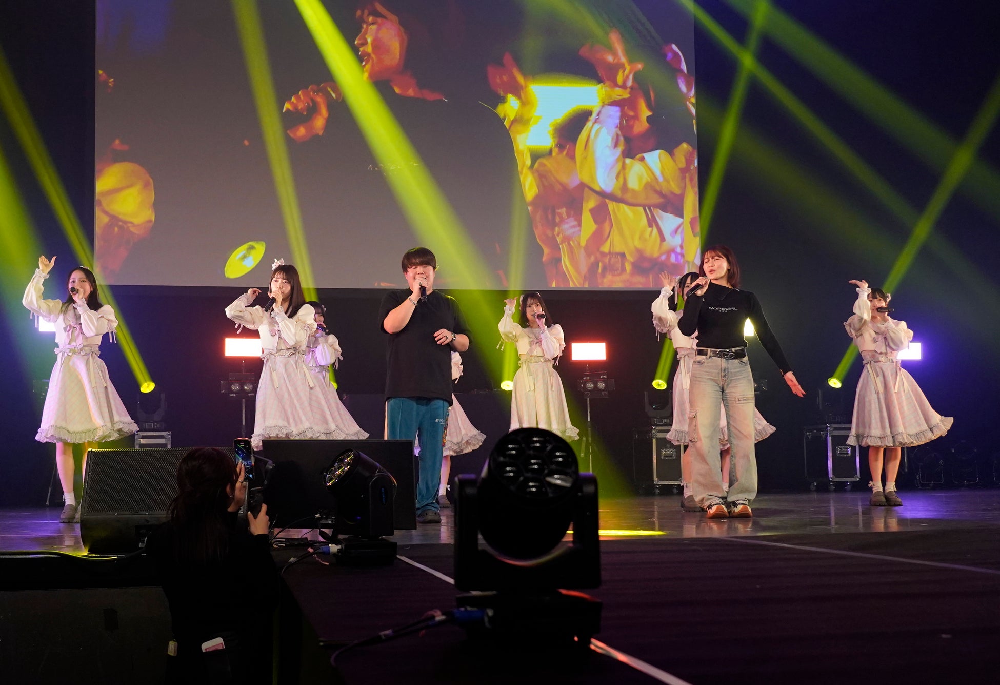 アイドルグループ「MyDresscode」が人気クリエイターユニットの夜のひと笑いとコラボ。夜のひと笑いの代表曲『ミライチズ』 を披露しました。夜のひと笑いの力強い歌声と、MyDresscodeの華やかでキレのあるダンスが完璧にシンクロし、ジャンルを超えた化学反応に会場は歓声に包まれました。
