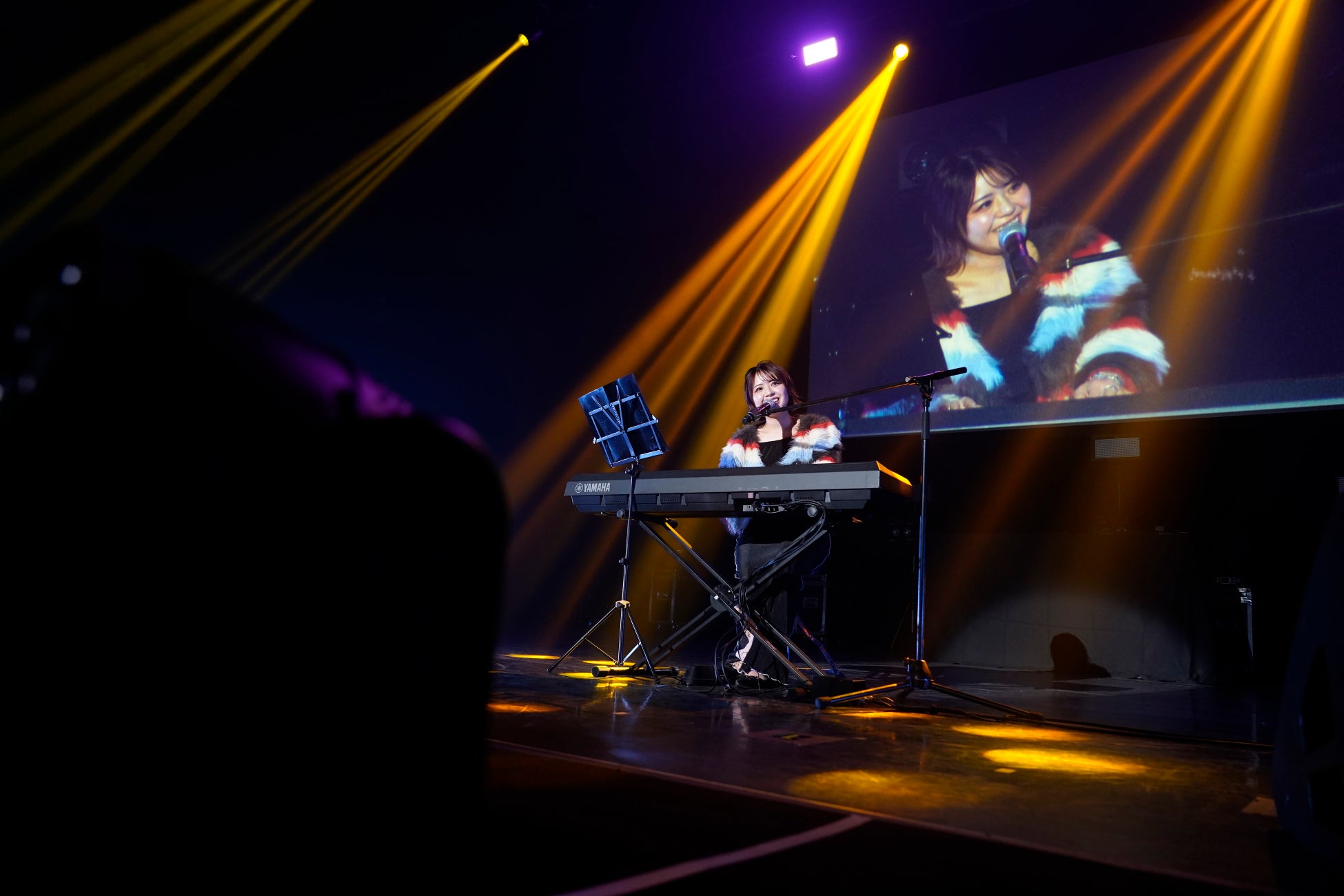 1曲目はヨルシカの「アルジャーノン」、2曲目は自身のデビュー曲「いつか言えたら」を披露し、観客を沸かせました。