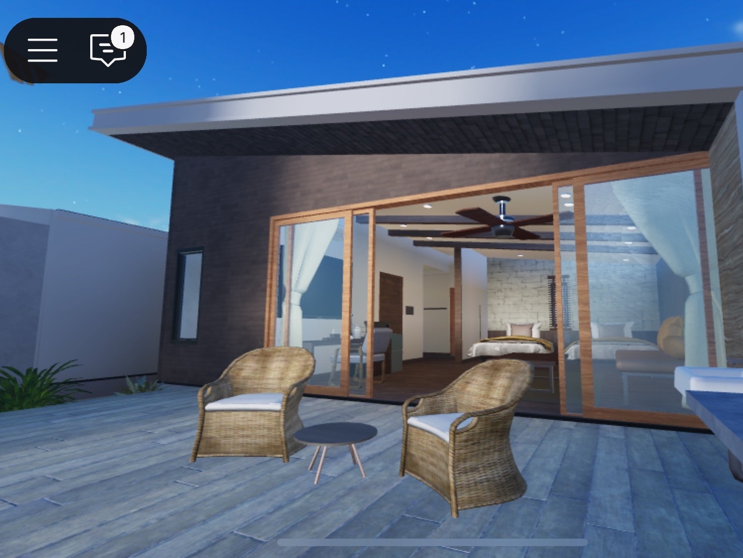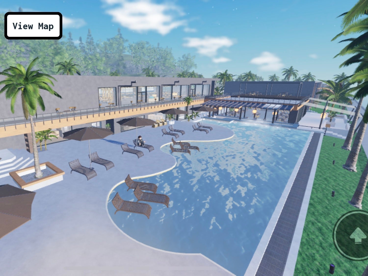 ロビー、客室、レストラン、プールなど、宿泊施設を3D空間で自由に探索可能。