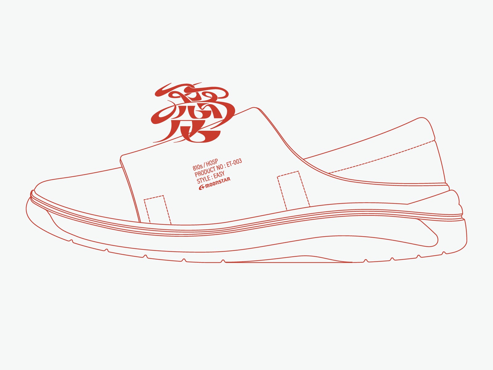フロントに『愛』の文字をあしらうことで、日常の中にそっとエールを送るようなデザインとなっている。この発想の源となったのは、MIA MIAで日々交わされる会話や漂う空気、そして人と人との距離感。そしてそこに息づく“コミュニケーション”。コラボレーションシューズでは、それら全てを靴というプロダクトを通して表現した。