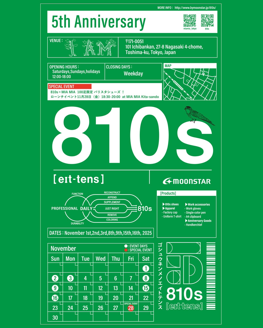 「810s」と「MIA MIA」、それぞれのブランドが築いてきた5年間の歩みと、「日常にちょうどいい」を追い求めたものづくりへの想いが交差するプロジェクトである、今回のコラボレーションシューズは、現場で日々動き回るバリスタたちへのリスペクトと、プロダクトとしての実用性、そして人の温もりが共存する、特別な一足となっている。