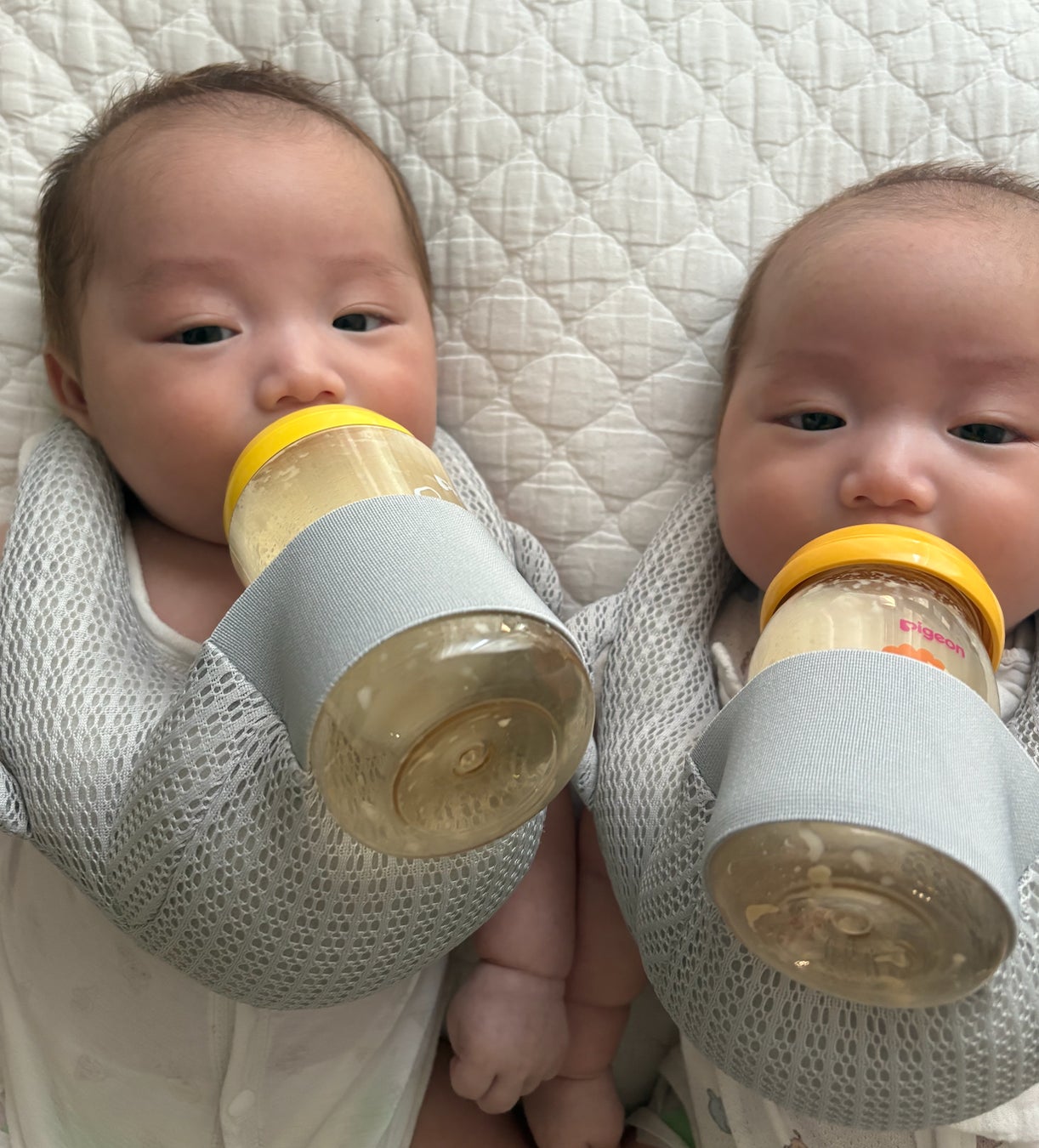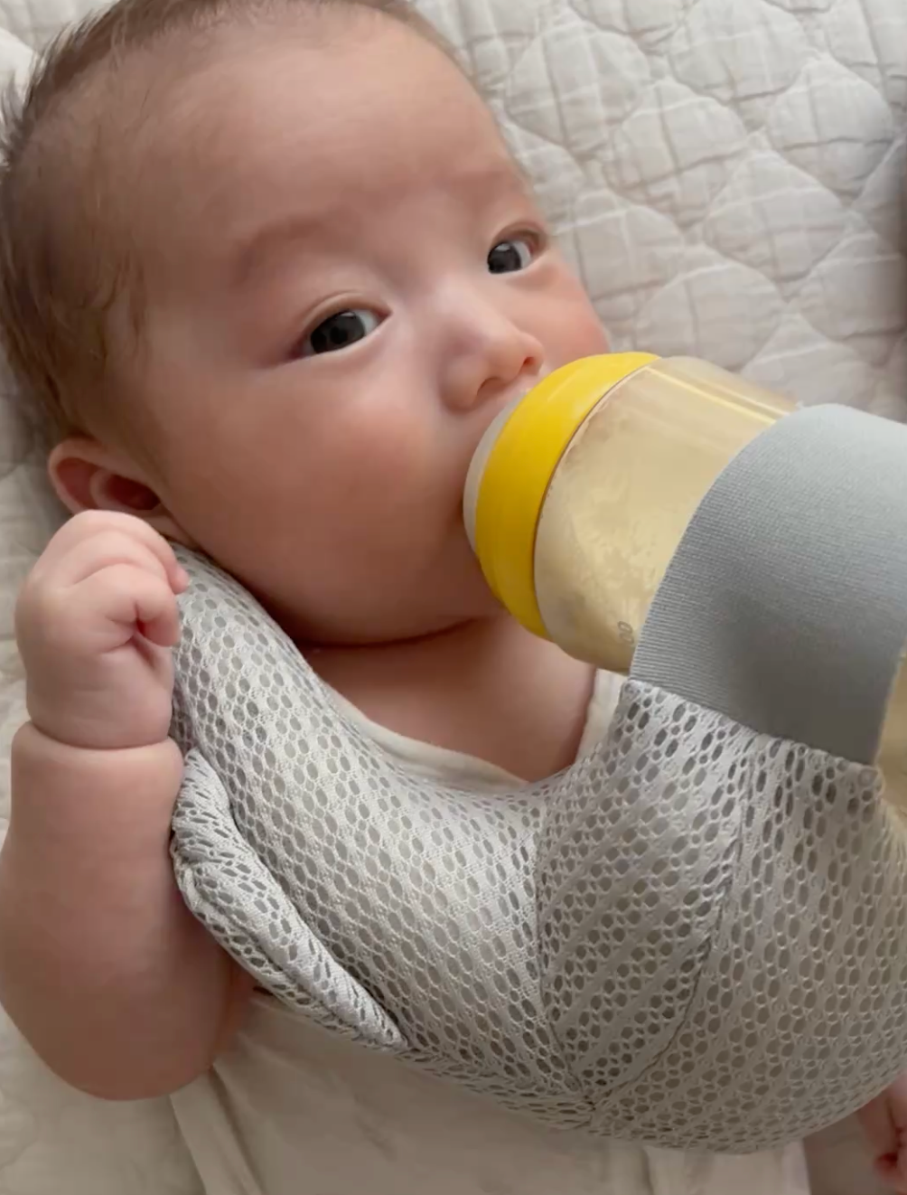 従来の哺乳びん補助でも難しかった、「飲みやすい姿勢×ハンズフリー」を実現しています。