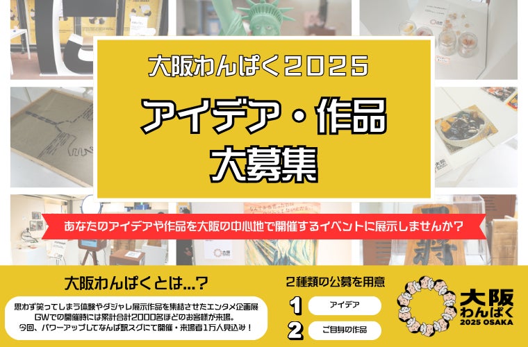 『大阪わんぱく』では、一般公募形式にて「作品アイデア」・「ご自身の作品」が展示されるかもしれない二種類の募集を開始しました。