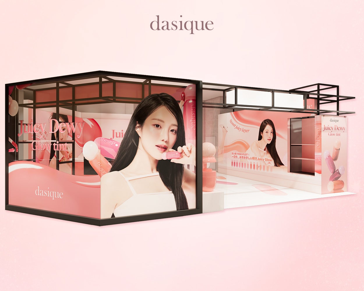 今回のPOP UP STOREでは、2025年春の新作ティント「ジューシーデューイグロウティント」をメインテーマに、デイジークの新作アイテムや春におすすめのアイシャドウパレット、人気のチーク、コンシーラーをはじめとした定番アイテムが勢揃いし、さまざまなプレゼントキャンペーンや限定企画セットもご用意しております。