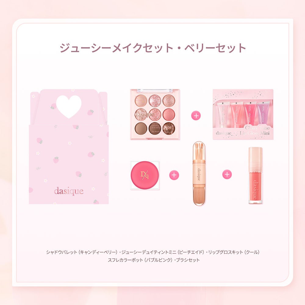 また、POP UP STORE限定で、春らしいカラーと可愛らしいパッケージのアイシャドウからチーク、リップまでトータルメイクをお楽しみいただけるスペシャル限定セットをご用意。「ベリーセット」と「モモセット」の2種類からお選びいただけます。