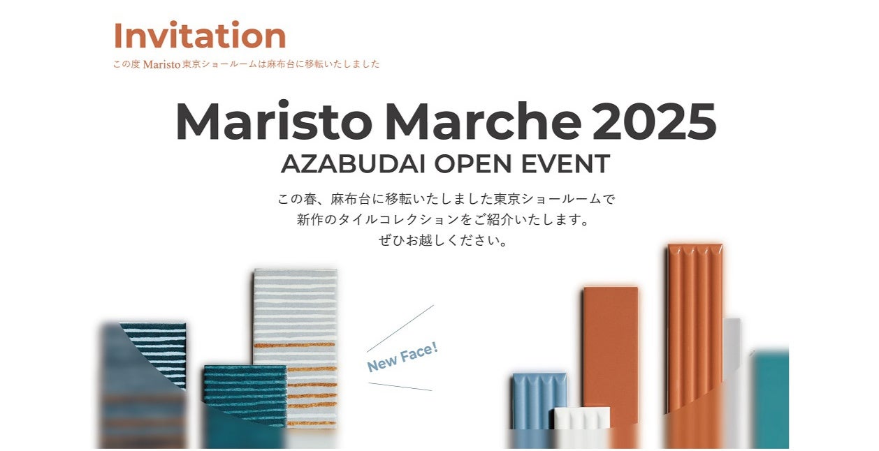 輸入タイルを中心に意匠性の高いマテリアルを取り扱うタイルメーカーブランド Maristo(マリスト)はこの度、Maristo東京ショールームの移転に伴い特別イベントを開催いたします。