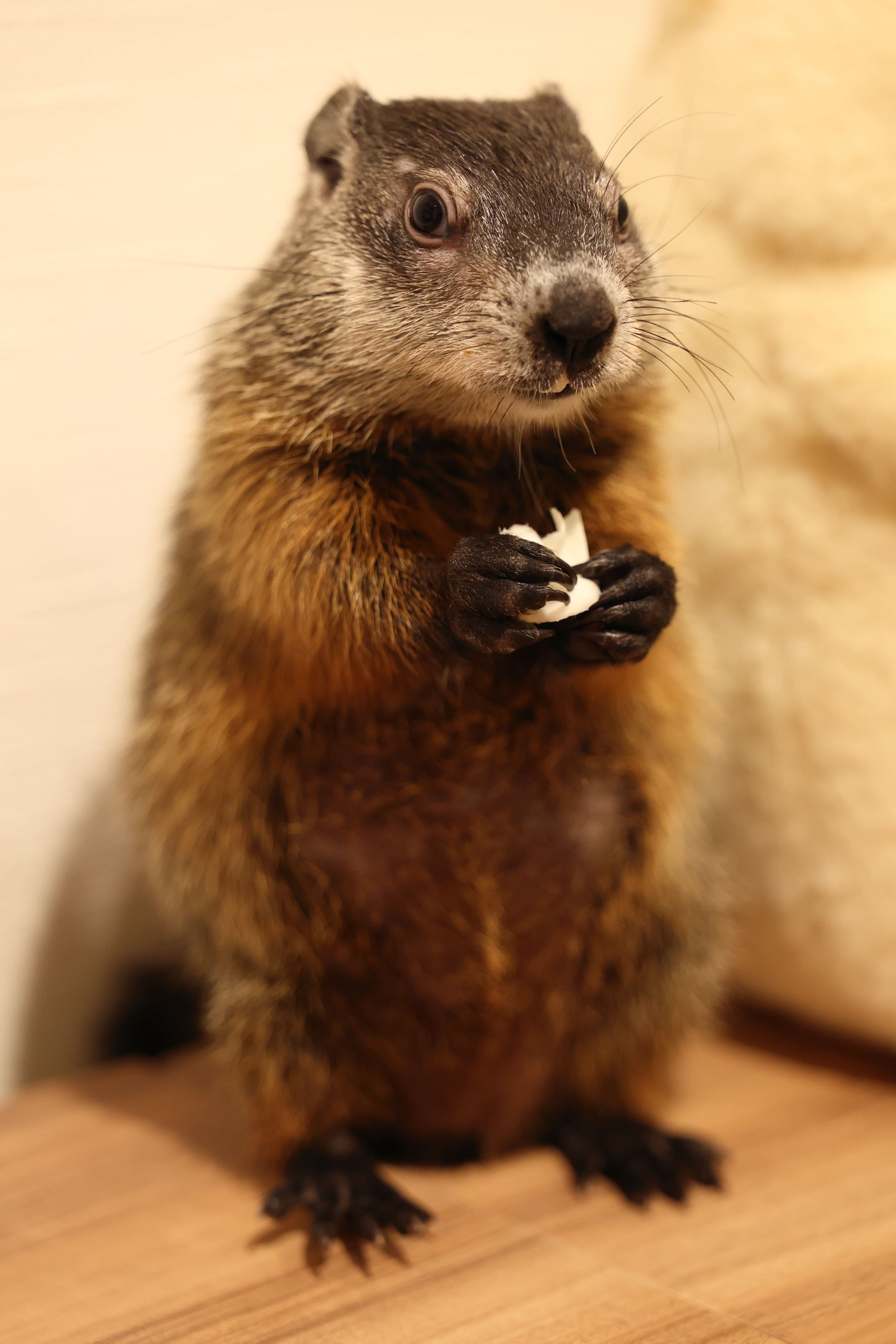 マーモットの体調が第一のため、直接的なふれあいは行っていませんが、おやつあげ体験を通して、マーモットと安心して触れ合える機会を提供。もぐもぐと食べる愛らしい姿を間近で見られます。
