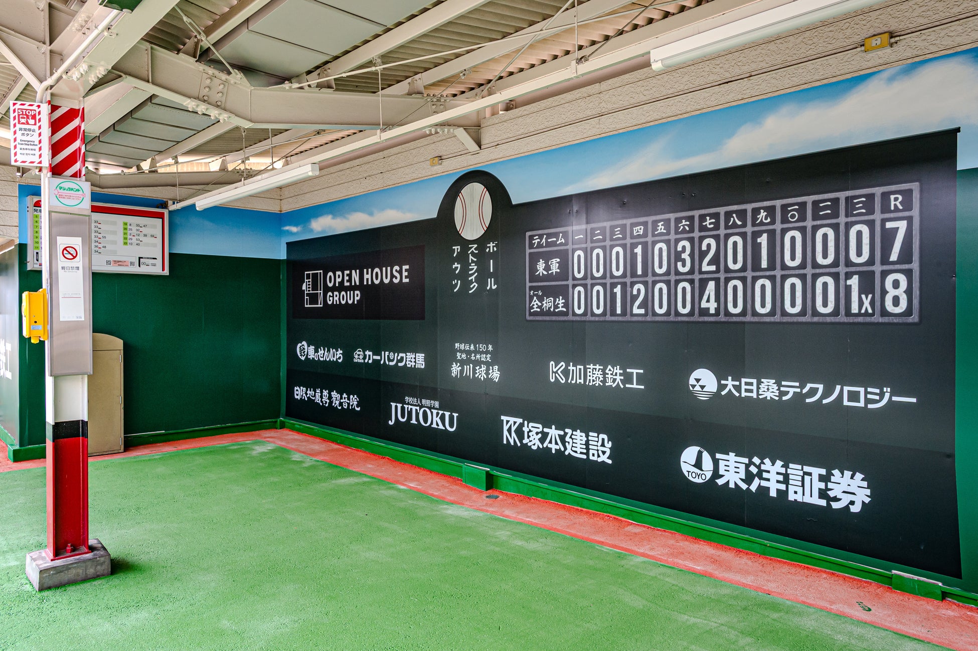 中心部には、2022年に野球伝来150年を記念に制定された「野球の聖地・名所150選」にも選ばれた桐生新川球場(現・新川公園)のスコアボードの一部をモチーフにした装飾が施されております。