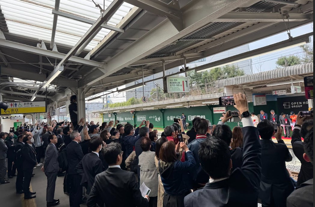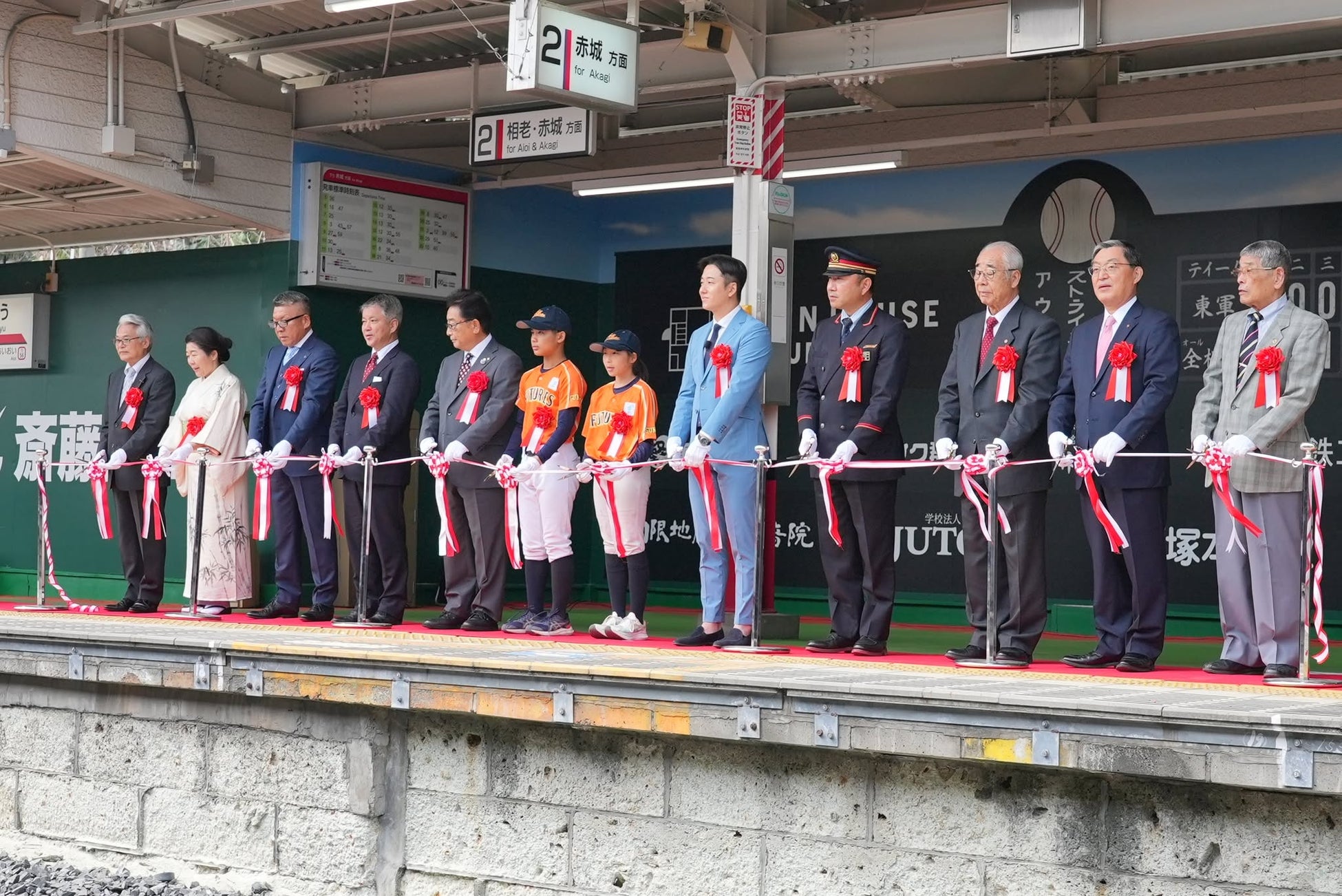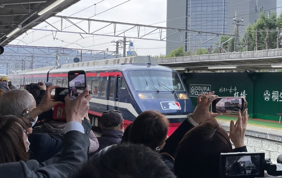 さらに、式典の最後は、MLB(メジャーリーグベースボール)カラーに彩られた特別ラッピング車両がホームに滑り込み、会場から大きな歓声があがる場面も。野球ファンはもちろん、鉄道ファンにも嬉しいサプライズとなりました。