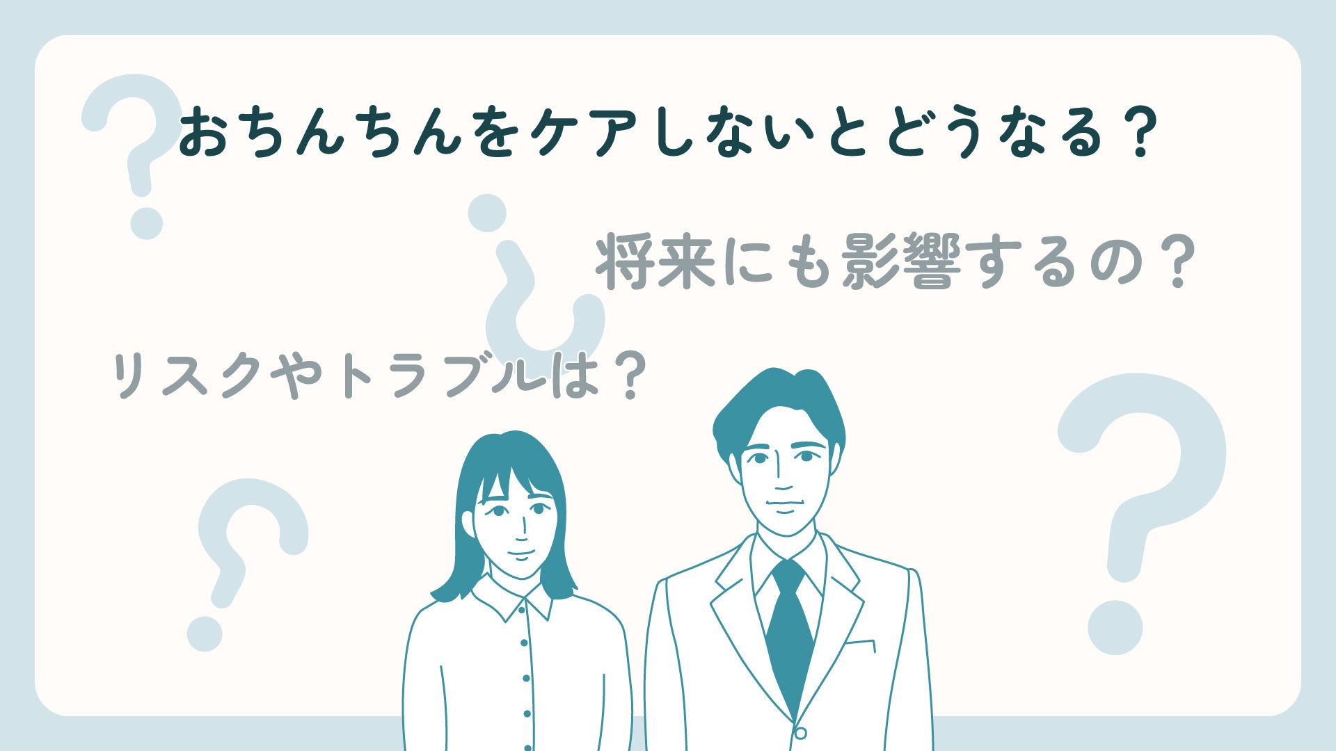 最も多いのは亀頭包皮炎で、包皮の中に汚れがたまり、そのままにしておくと細菌が繁殖して炎症を引き起こすことがあります。かゆみや痛みを伴い、悪化すると治療が必要になることもあります。