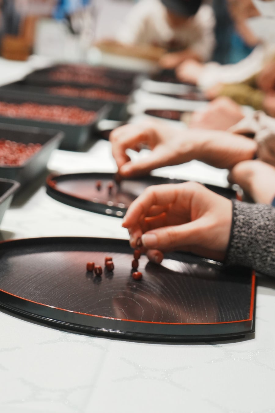ルール:3分間の間に丹波大納言小豆を縦に積んでいく