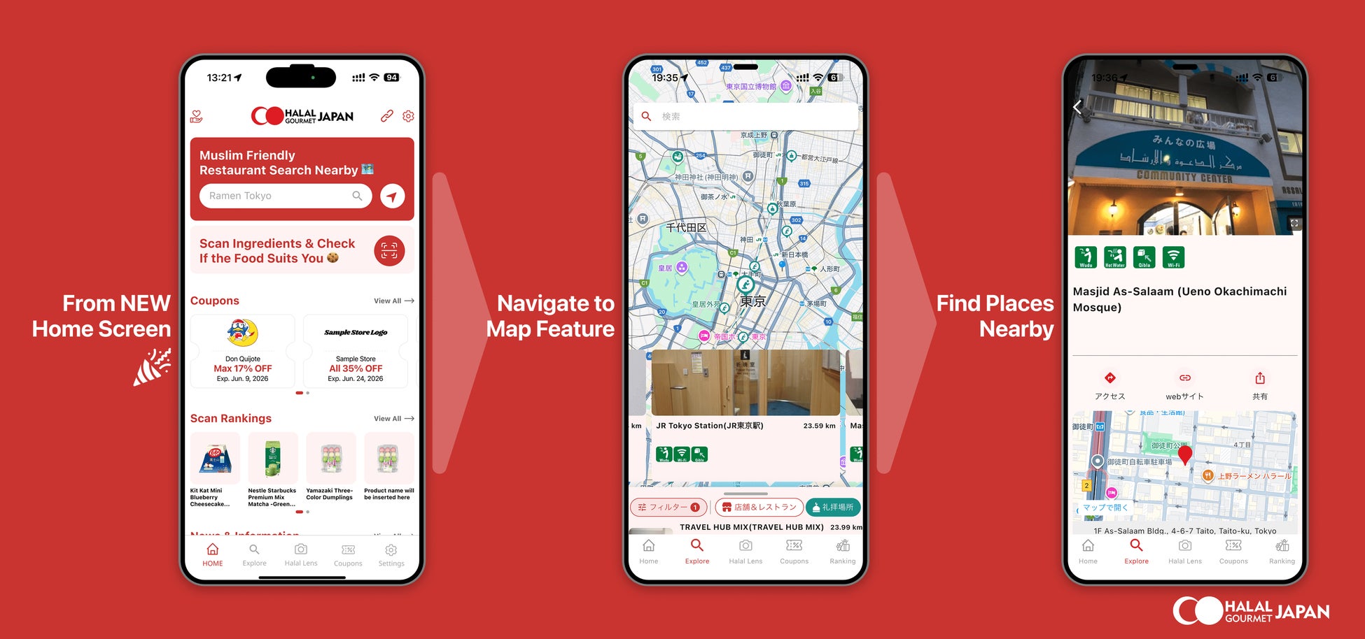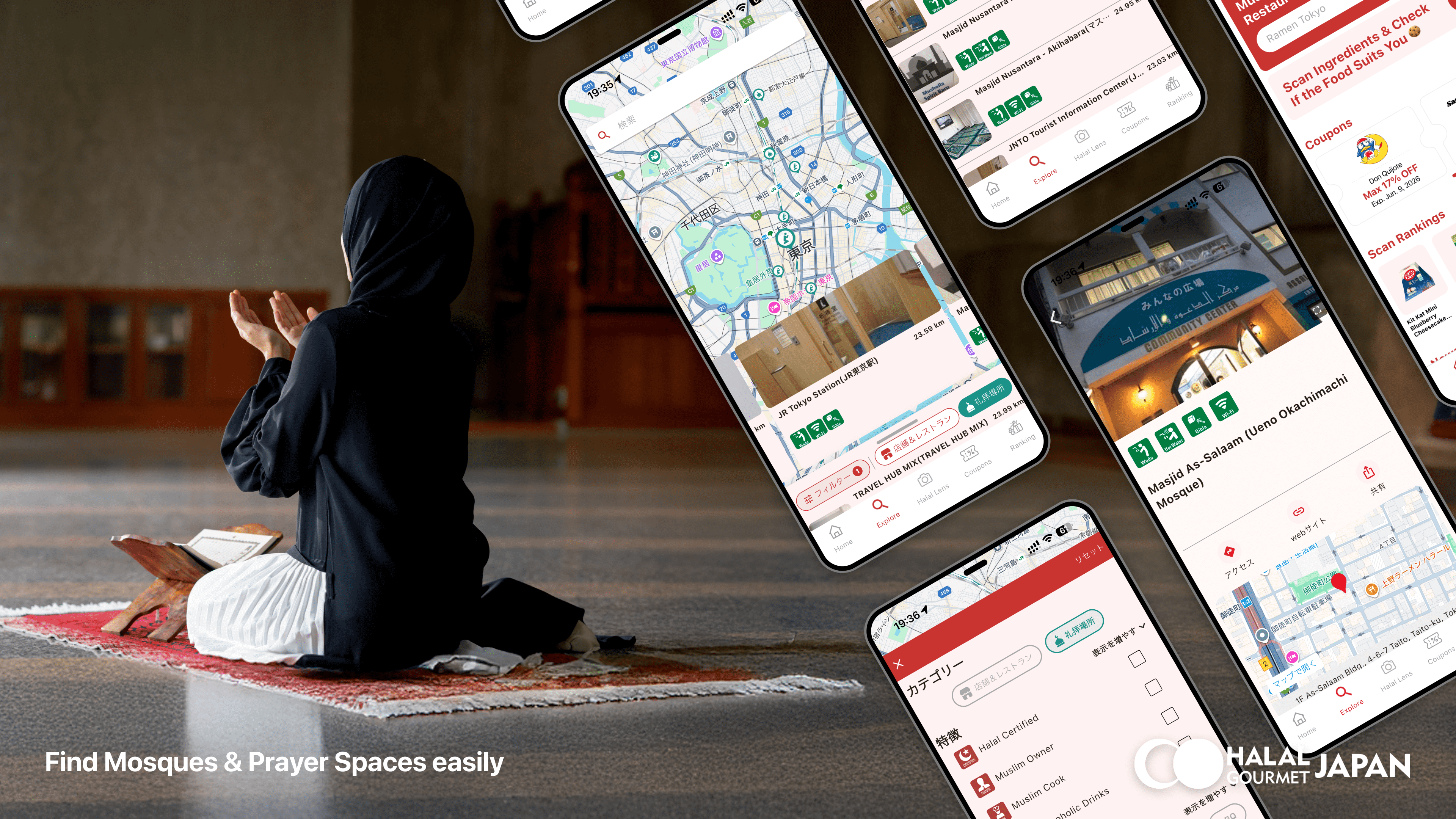 株式会社ムービングスクワッド(代表取締役:須田章弘)は、ムスリム向けグルメ情報アプリ「ハラー ルグルメジャパン」の新機能として「礼拝所検索」機能を追加したことをお知らせいたします。 これにより、日本全国の700店以上のレストランに加え、250か所を超える礼拝可能な施設やモスクを簡単に検索‧閲覧できるようになり、日本の滞在中も安心して礼拝の時間を確保することが可能となりました。