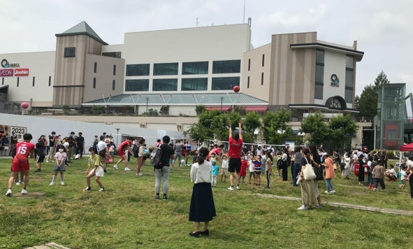 箕面市をホームタウンとするサンバーズは、2021年からみのおキューズモールとパートナーシップの取り組みをはじめ、みのおキューズモールを通して地域の人々にサンバーズを知ってもらいファンになってもらうための活動をしています。またみのおキューズモールはサンバーズとの取り組みを通じて、来館いただくキッカケづくりや、地域の人々の交流機会創出など地域課題の解決に取り組んでいます。みのおキューズモールでは、サンバーズの壮行会や優勝報告会、選手によるトークショー・サイン会の開催、ユニフォームや星取表の展示など、地域の人々に楽しんでいただける企画を実施しています。サンバーズ選手によるソフトバレーボール教室を開催した際には、地域の子供たちが多く集まり、そこでママ同士がつながって地域のコミュニティ形成に貢献しました。サンバーズの選手と触れ合える非日常の体験を通して、スポーツの楽しさや魅力を伝え、スポーツが好きな子供を増やしたいと考え取り組んでいます。