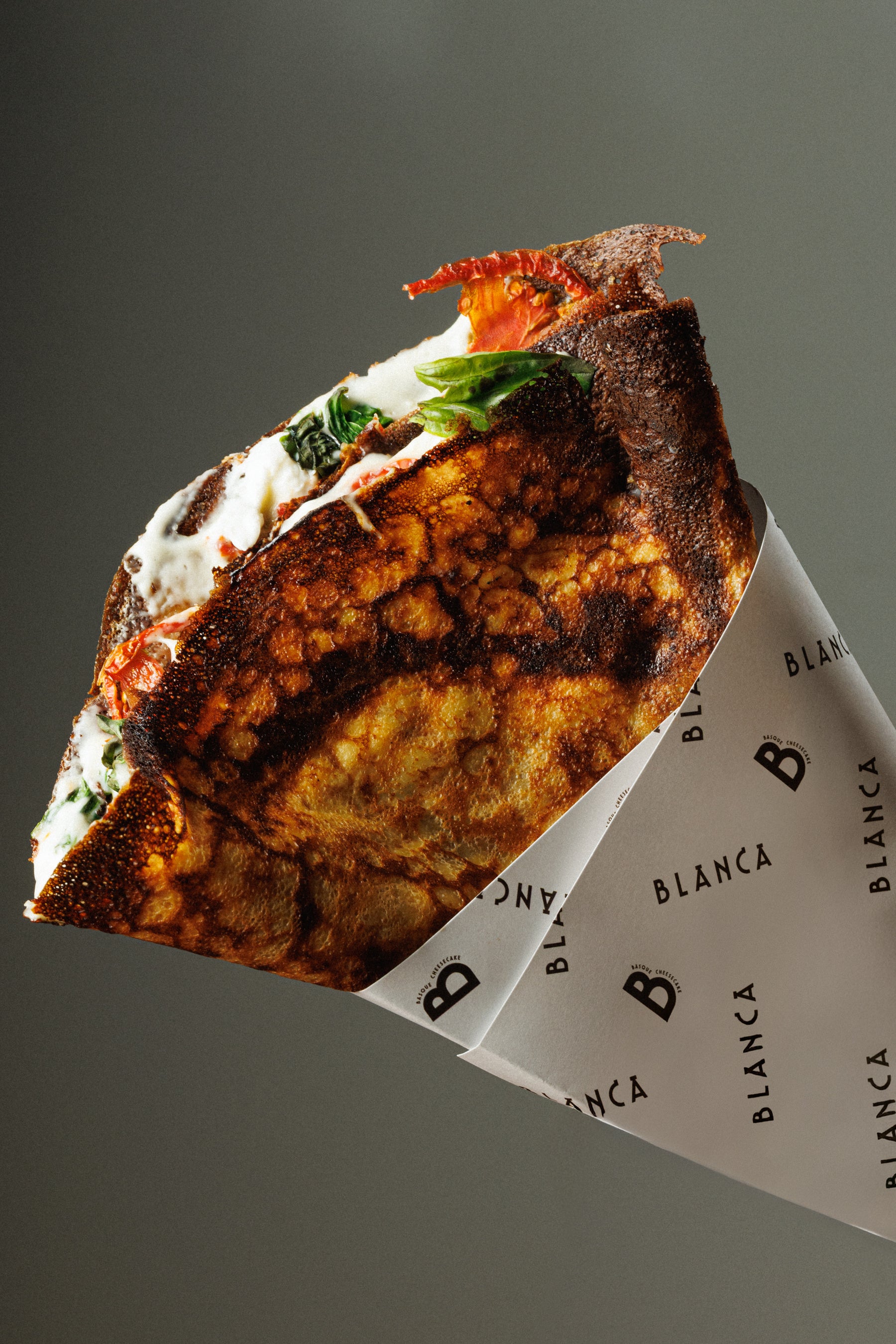 麻布台ヒルズ店限定の看板メニュー「焦げを楽しむクレープ」は、おかげさまで多くの食通やリピーターにも愛され、特に広告宣伝を行っていないにも関わらず、SNSや各メディア・ラジオでのご紹介も後押しとなりオープンからわずか2か月で累計販売数15,000枚を達成。連日行列ができるほどの人気商品となりました。会期延長に伴い、より多くのお客様におたのしみいただけるよう、新たにお食事系クレープ「バジルトマト&チーズ」と、「BLANCA CHEESE CREPE(ブランカチーズクレープ)」にBLANCA初となる自家製ジェラートを添えた夏にぴったりのスペシャルなメニューを追加いたします。