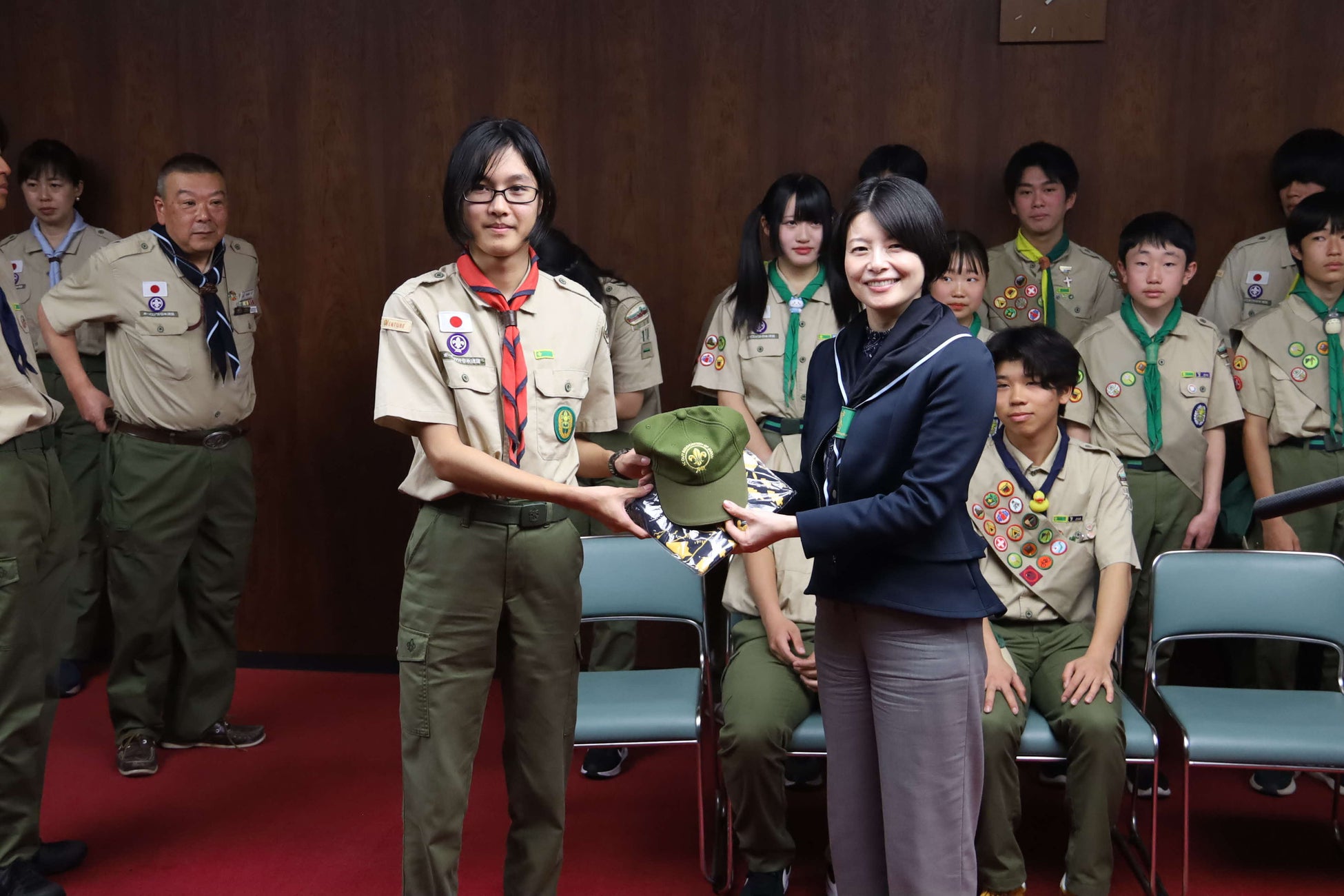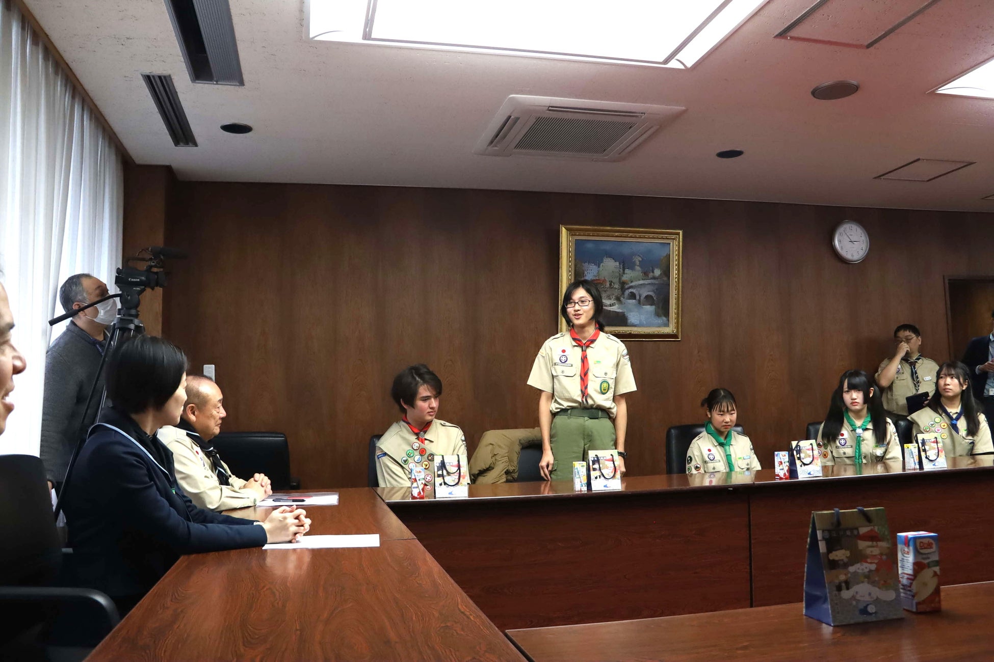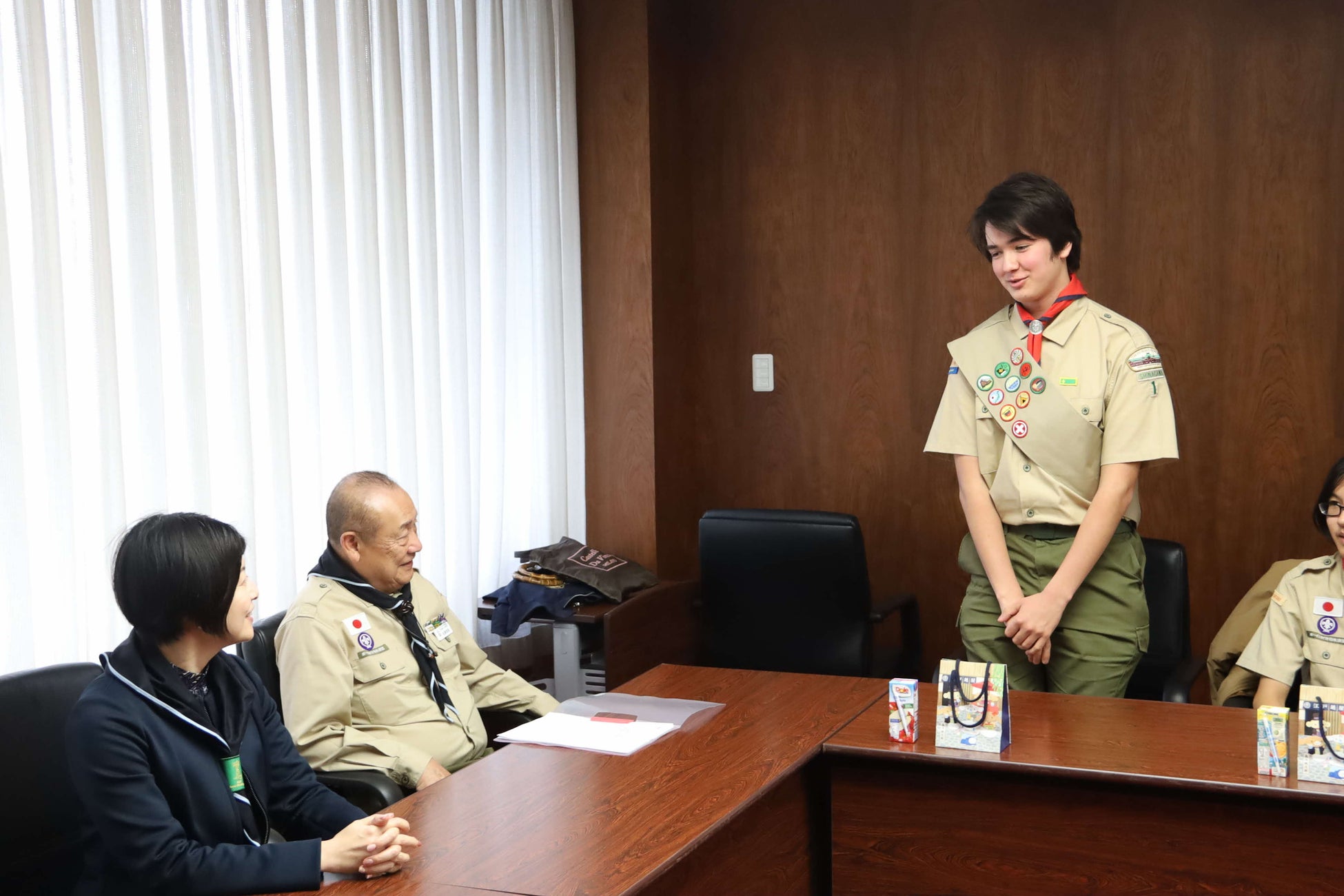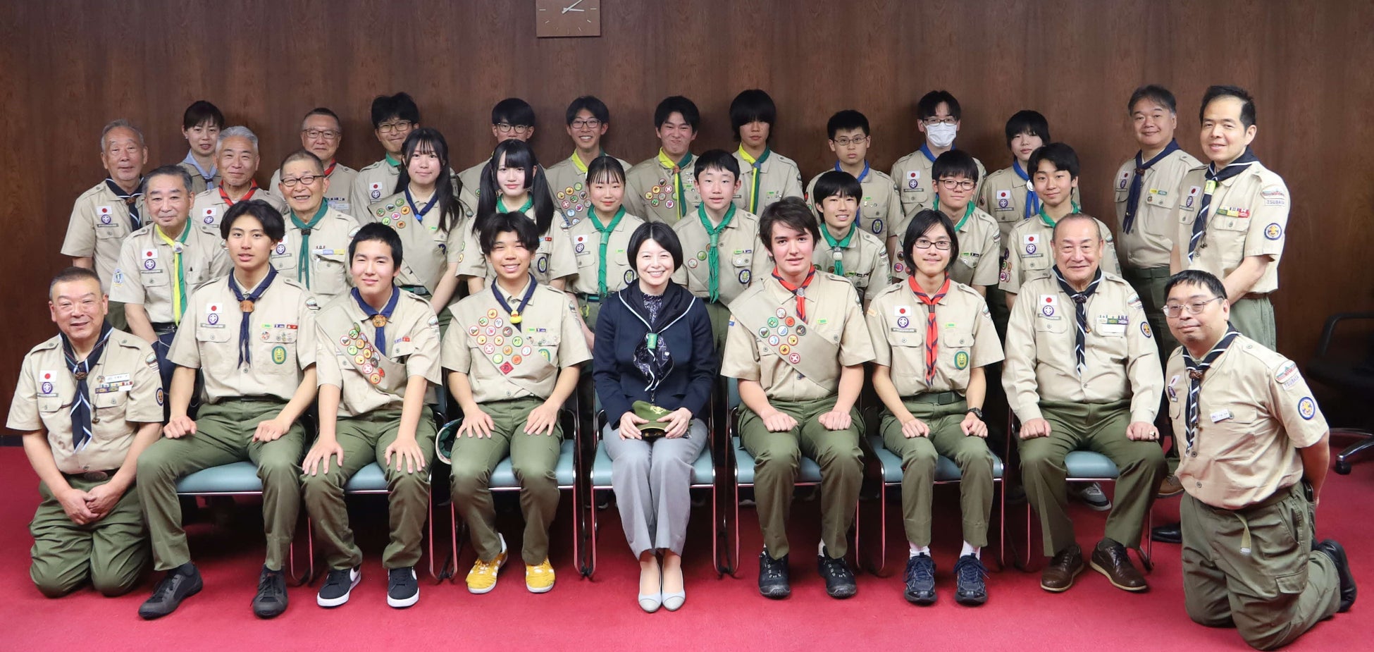 ボーイスカウトの「隼スカウト章」「菊スカウト章」の進級者が品川区長への表敬訪問を実施しました。
