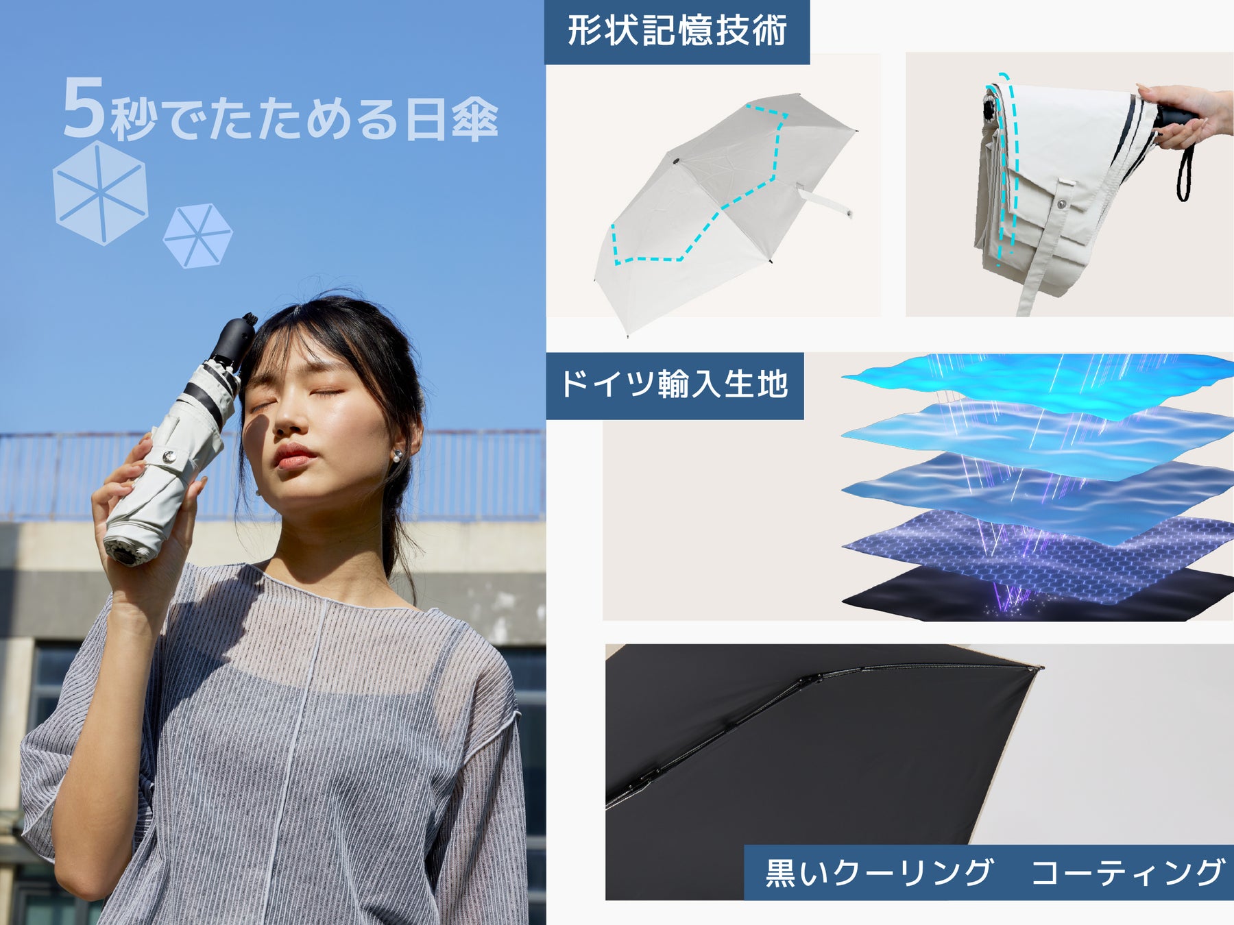 傘を畳むのに要する時間:約5秒(形状記憶加工による)
