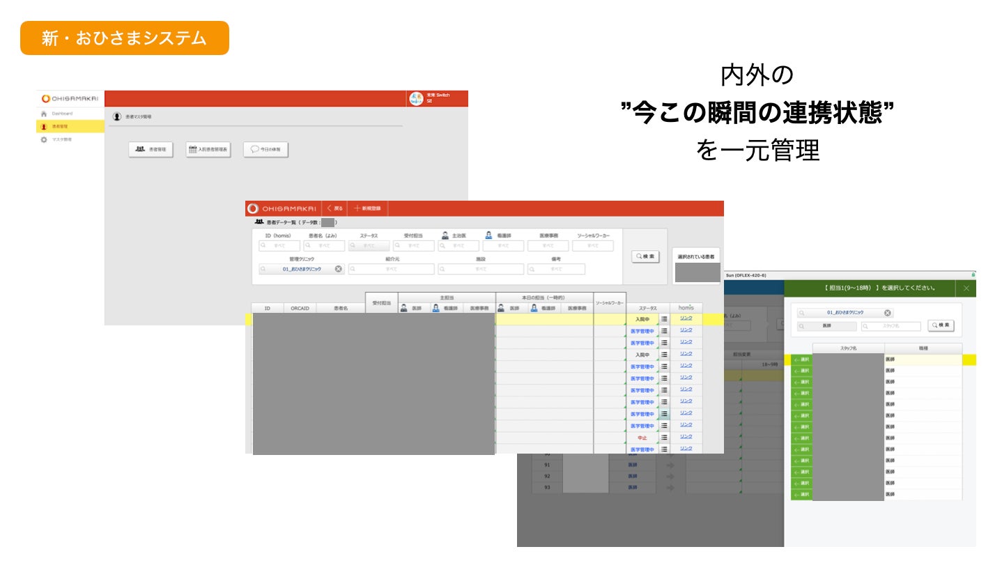 おひさま会は「伴走医療」を理念として掲げ、患者一人一人に寄り添い、笑顔とエネルギーで希望を灯し、諦めない未来を照らし出すことを組織の目的としています。「伴走医療」の効果的な実践のために、非対人的な情報処理業務を徹底的に効率化し、職員一人一人が、人間同士の関わり合いを中心としたクリエイティブな仕事に集中できる環境を構築する、DXの取り組みを進めています。