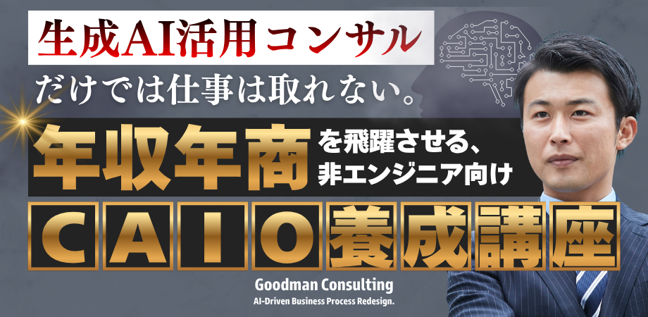 GOODMAN CONSULTING株式会社(本社:東京都、以下当社)は、AI時代に最も求められる職「CAIO」を育成する実践型プログラム『非エンジニア向け CAIO養成講座』を開始いたしました。