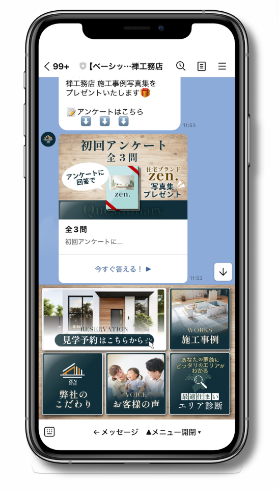 実際の工務店・住宅会社向け公式LINEの操作画面を体験できるデモアカウントをご案内しています。工務店の集客機能、予約管理機能、顧客フォロー機能など、すべての機能をお客様目線で実際に体験いただけます。ご希望の方は以下からお申し込みください。