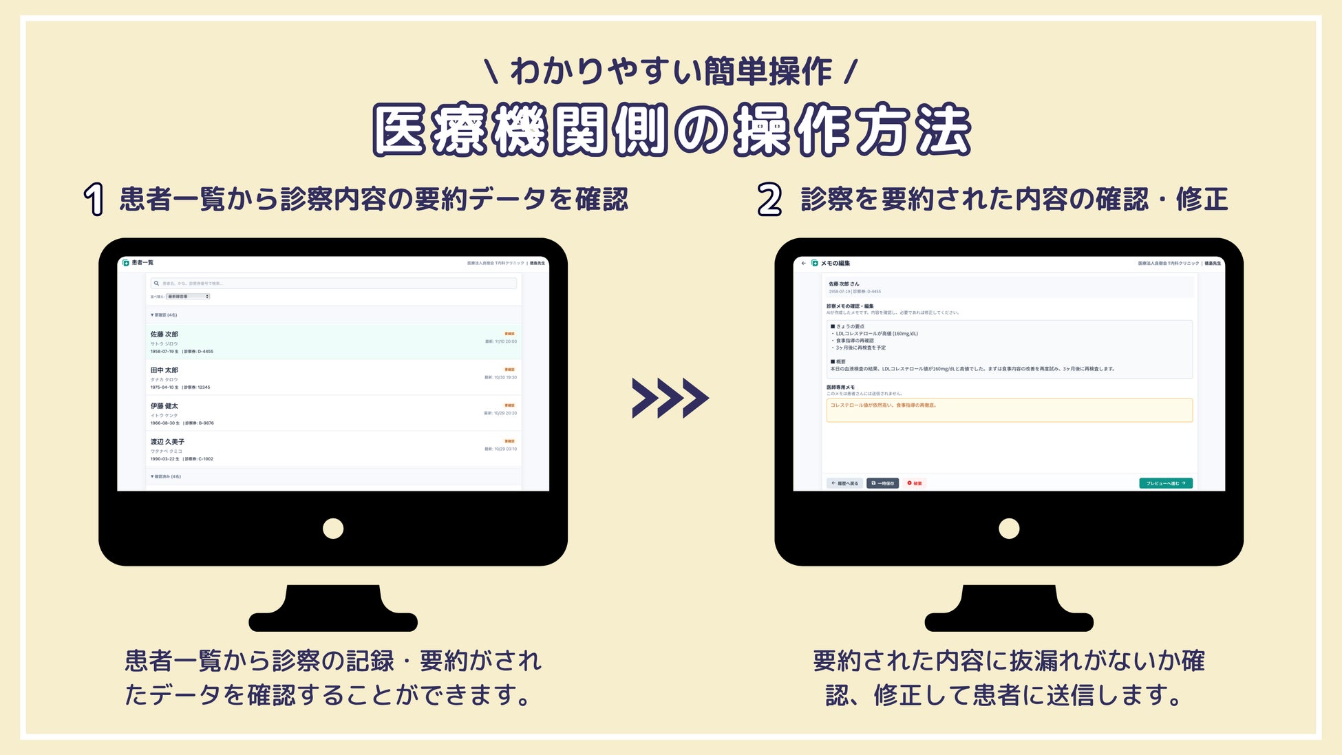 日々の診療で生じる“診察時の説明がうまく残らない”課題に対応し、患者理解の向上と医療者の負担軽減を両立できる点が評価されています。