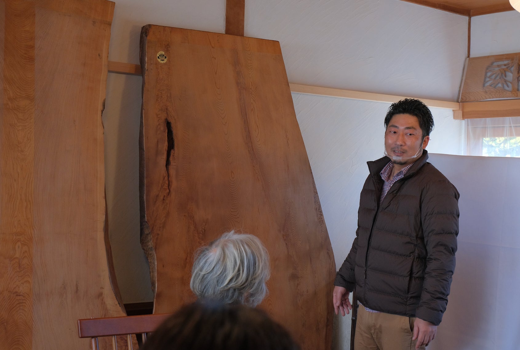 杢目から当時の自然環境の状態や樹種による特徴の違いなど、銘木の価値・魅力をひなもり銘木 三代目・丸野代表が伝えます。