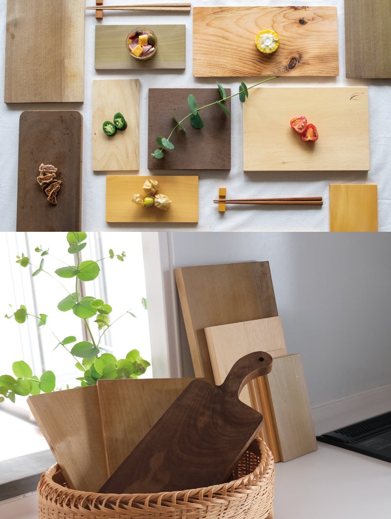 イベント当日は、コース料理の提供に加えて、ひなもり銘木が手がける木製プロダクトの展示・販売も行います。職人が丁寧に仕上げたカッティングボードやプレートなど、銘木の温もりを日常で感じていただけるアイテムを取りそろえております。