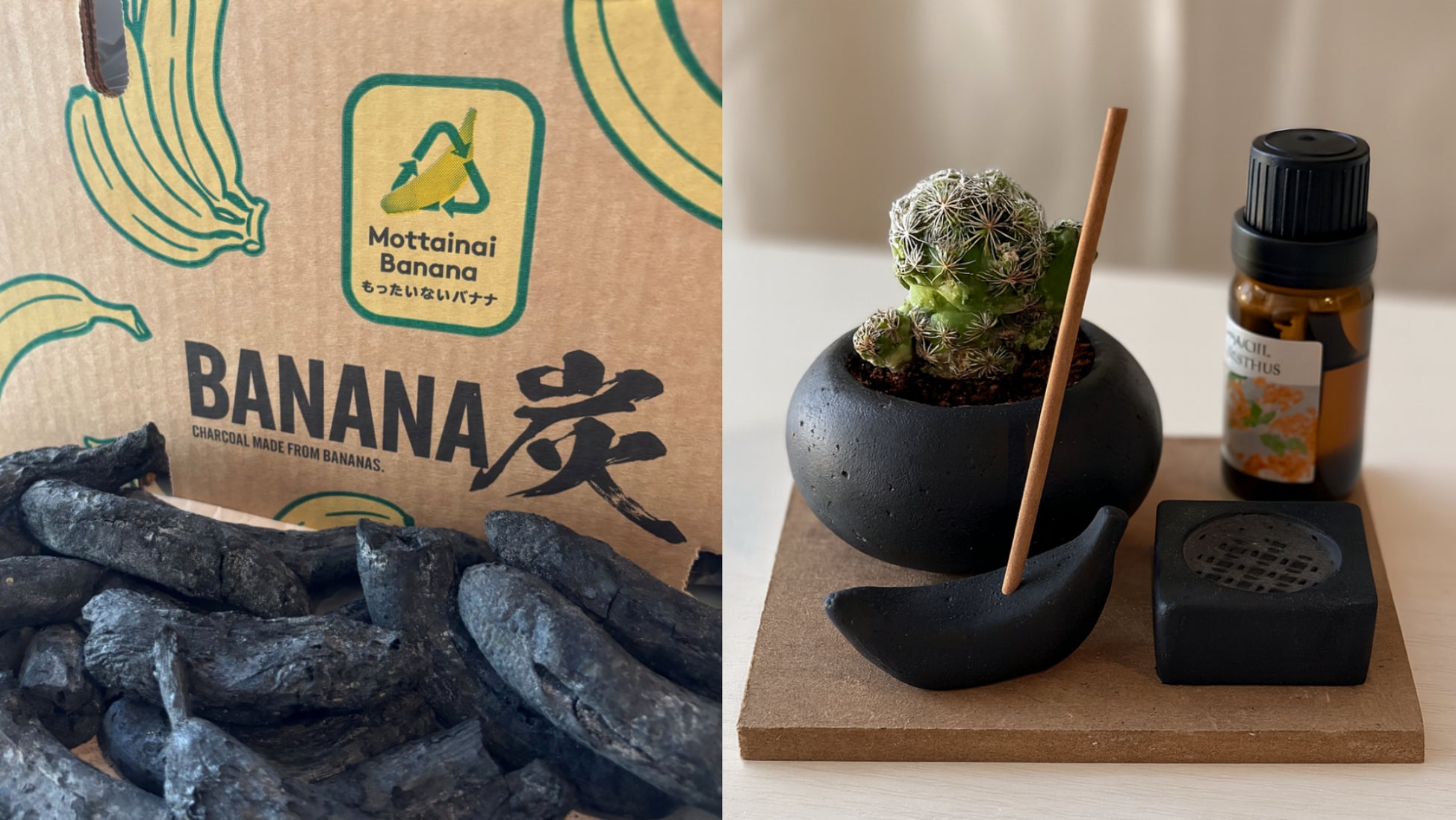 今回はそのバナナ炭を更にアップサイクルし、暮らしに寄り添うクラフトデザインへと昇華させました。